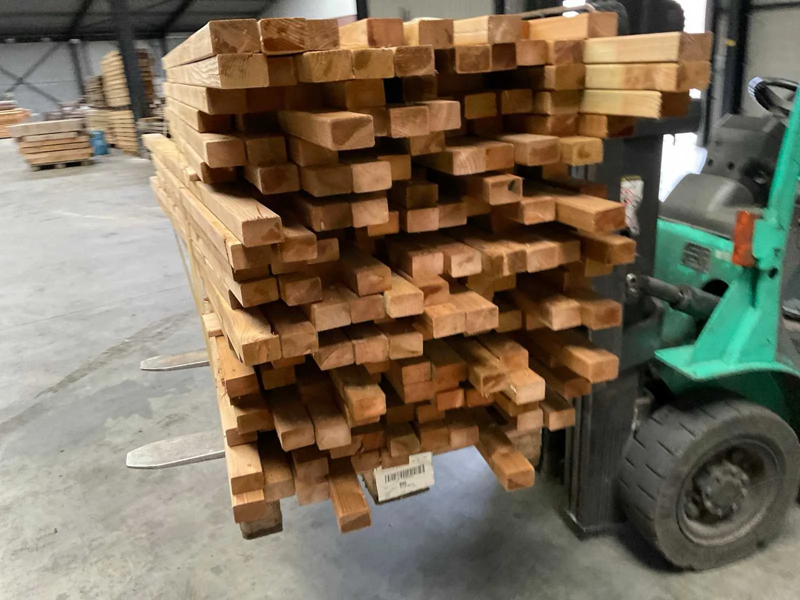 Partij grenen geïmpregneerde balken 80-180x6,5x4,5 cm. Bestaat uit diverse lengtes 80-180cm, in totaal ca. 250 lopende meter. Zie foto's voor details. Houtsoort: Grenenhout geimperneerd Kopmaat: 45x65 Gewicht: 400kg