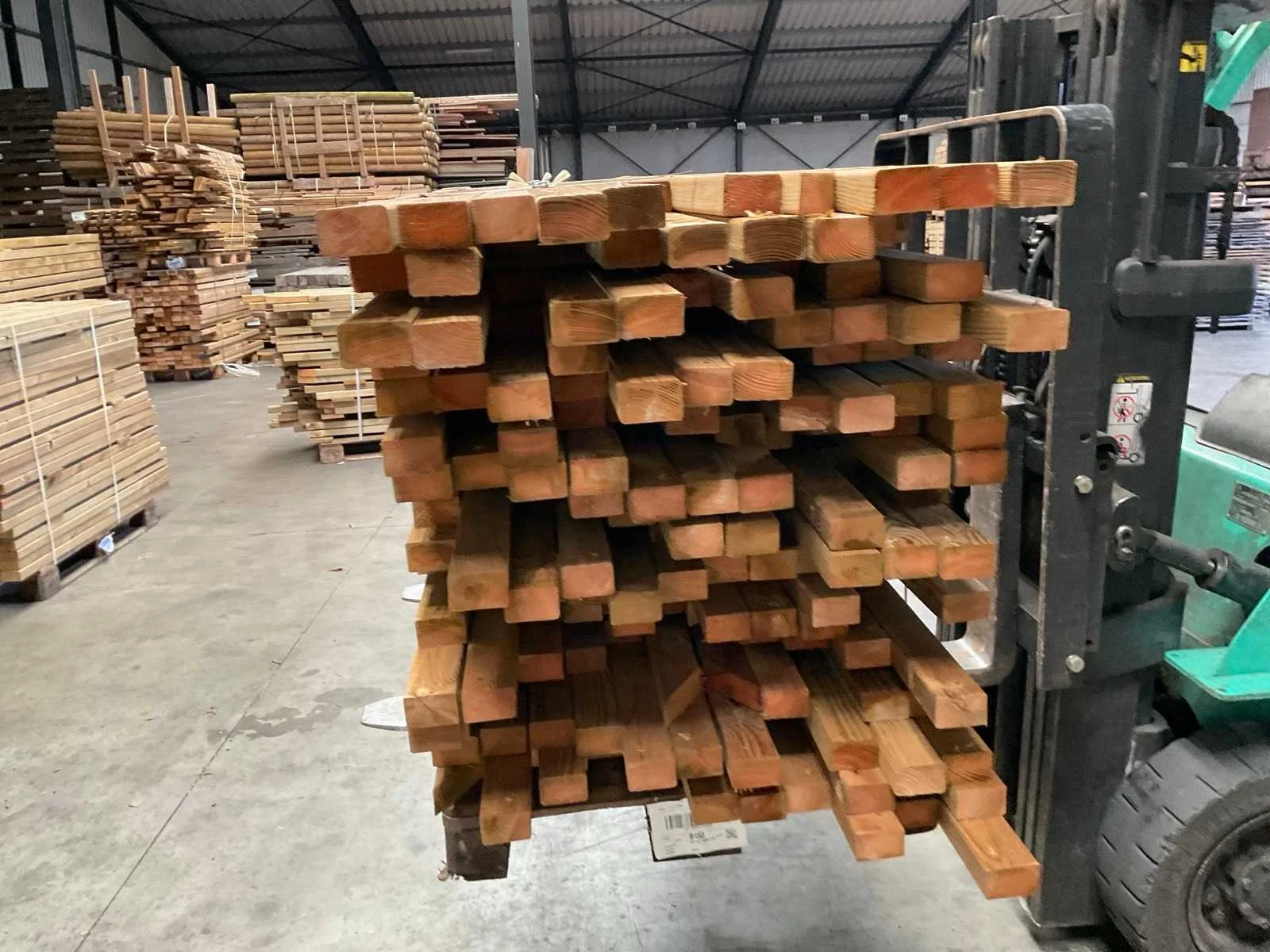 Partij grenen geïmpregneerde balken 80-180x6,5x4,5 cm. Bestaat uit diverse lengtes 80-180cm, in totaal ca. 250 lopende meter. Zie foto's voor details. Houtsoort: Grenenhout geimperneerd Kopmaat: 45x65 Gewicht: 400kg
