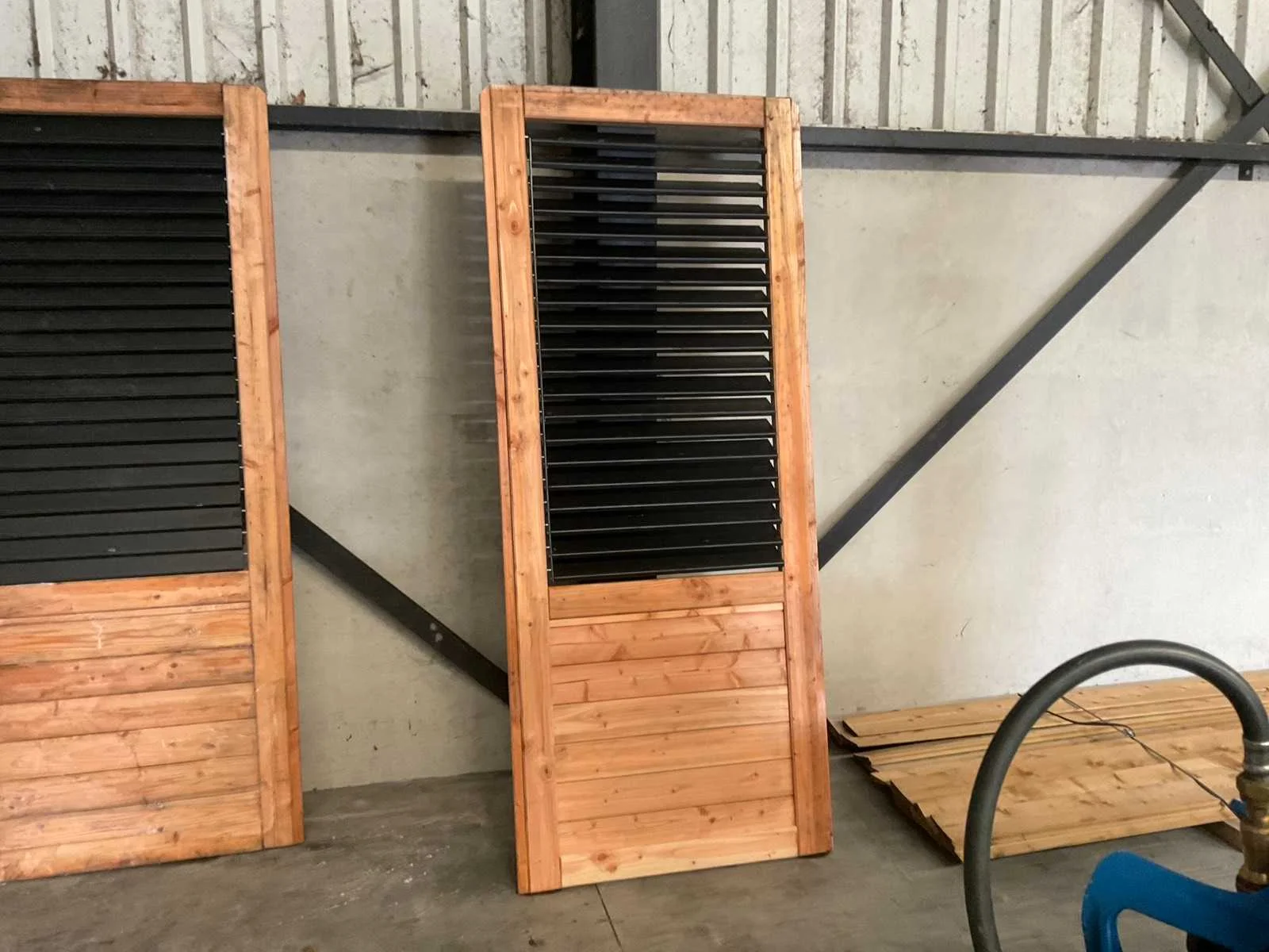 Zie foto's voor details. Model: Lammelle paneel verstelbaar Gewicht: 70kg Breedte: 90cm Hoogte: 223cm Materiaal: Douglas
