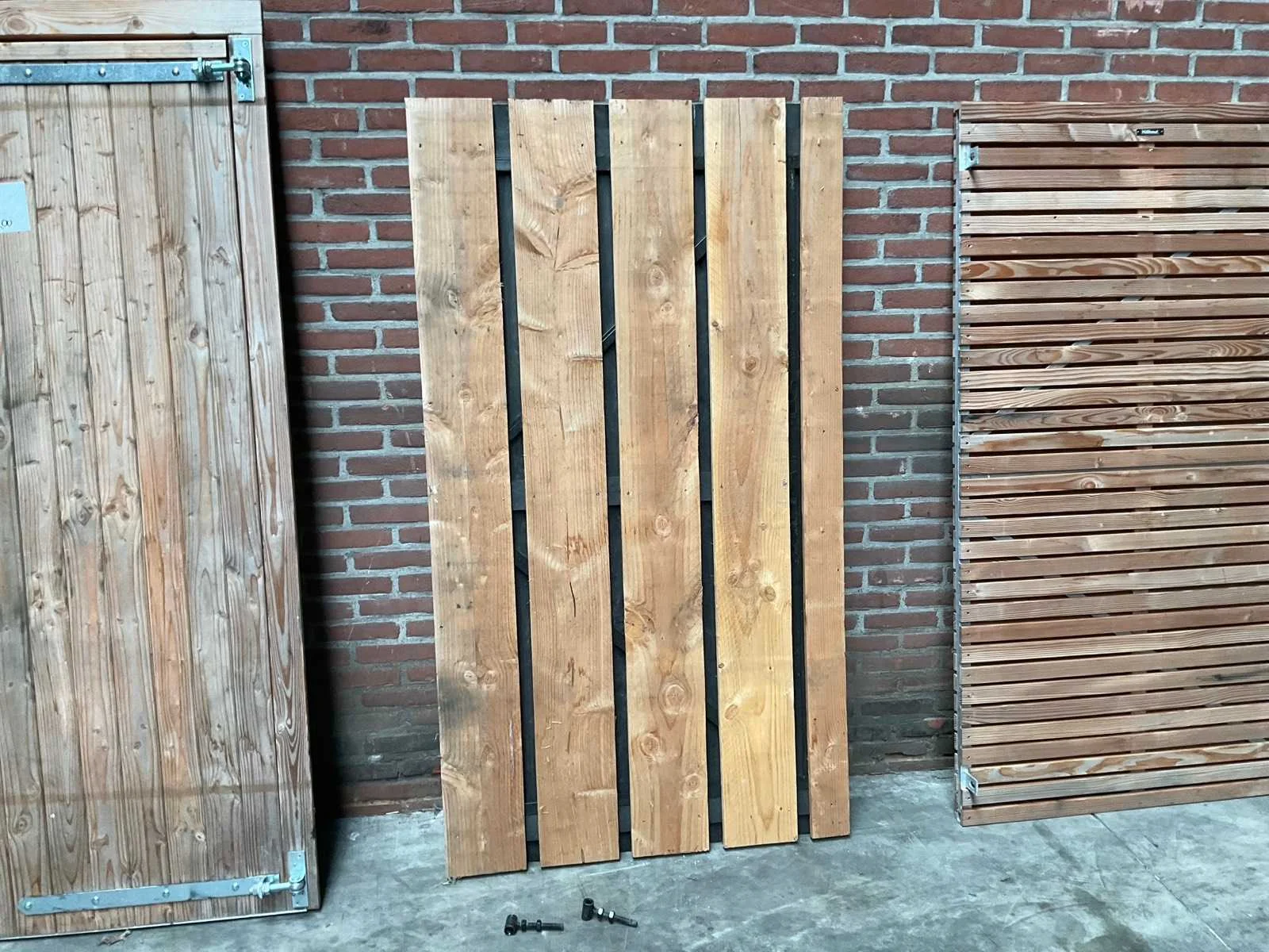 Wordt geleverd ZONDER hang- en sluitwerk. Zie foto's voor details. Merk: Hillhout Model: Tuinpoort Gewicht: 2kg Breedte: 100cm Hoogte: 180cm Materiaal: Metaal, Douglas