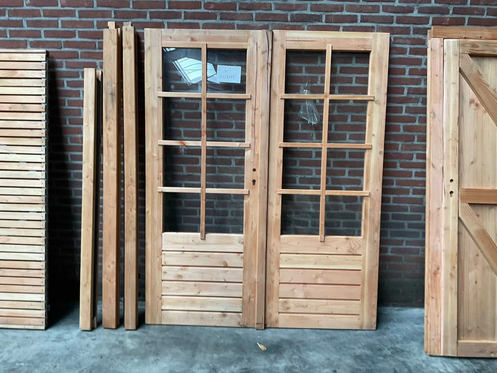 Let op: Lat beschadigd, zie foto's voor details. Wordt geleverd ZONER hang-en sluitwerk. Buitendeur: true Stomp: true Afmeting h: 1920mm Afmeting b: 1500mm Hout: true Dikte: 35mm Glas: true Kleur: Douglas