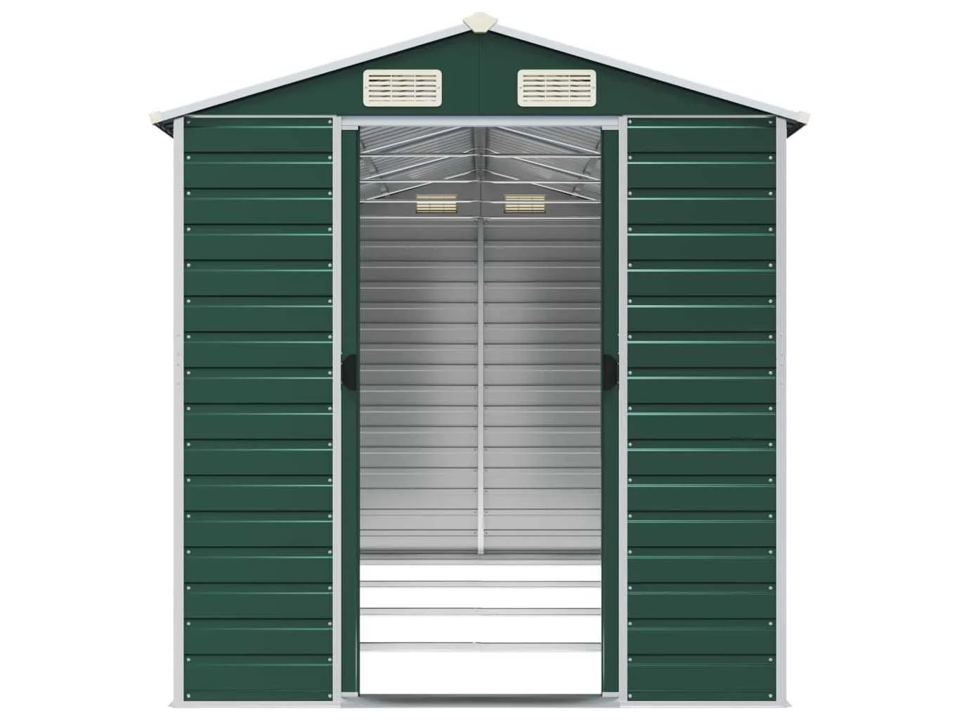 Omschrijving Breid je tuinopbergmogelijkheden uit en bescherm je gereedschap met deze multifunctionele tuinschuur. Robuust materiaal: het tuinschuurtje is gemaakt van gegalvaniseerd staal, dat roestvorming voorkomt en lang meegaat. Staal is een buitengewoon hard en sterk materiaal. Het biedt stevigheid en stabiliteit. Galvanisatie biedt een betere bescherming tegen corrosie en is handig voor producten die buiten of in ruwe omgevingen worden gebruikt. Voldoende opbergruimte: deze metalen schuur biedt voldoende ruimte om je brandhout, tuingereedschap, meubels, uitrusting en meer in op te bergen. Handige handgrepen: de deur van de opbergschuur is voorzien van handgrepen voor gemakkelijke toegang. Goede ventilatie: de berging heeft 4 ventilatieopeningen die zorgen voor ventilatie, om de ophoping van vocht en geurtjes in de schuur te verminderen. Schuin ontwerp: dankzij het schuine dak loopt water er ongehinderd vanaf. Kleur: groen Materiaal: gegalvaniseerd staal Totale afmetingen: 191 x 385 x 198 cm (B x D x H) Afmetingen deur: 80 x 170 cm (B x H) Merk: vidaXL Model: zadeldak Product type: tuinhuis Kleur: donkergroen Gewicht: 125kg Lengte: 385cm Breedte: 191cm Hoogte: 198cm Materiaal: Verzinkt-gespoten staal