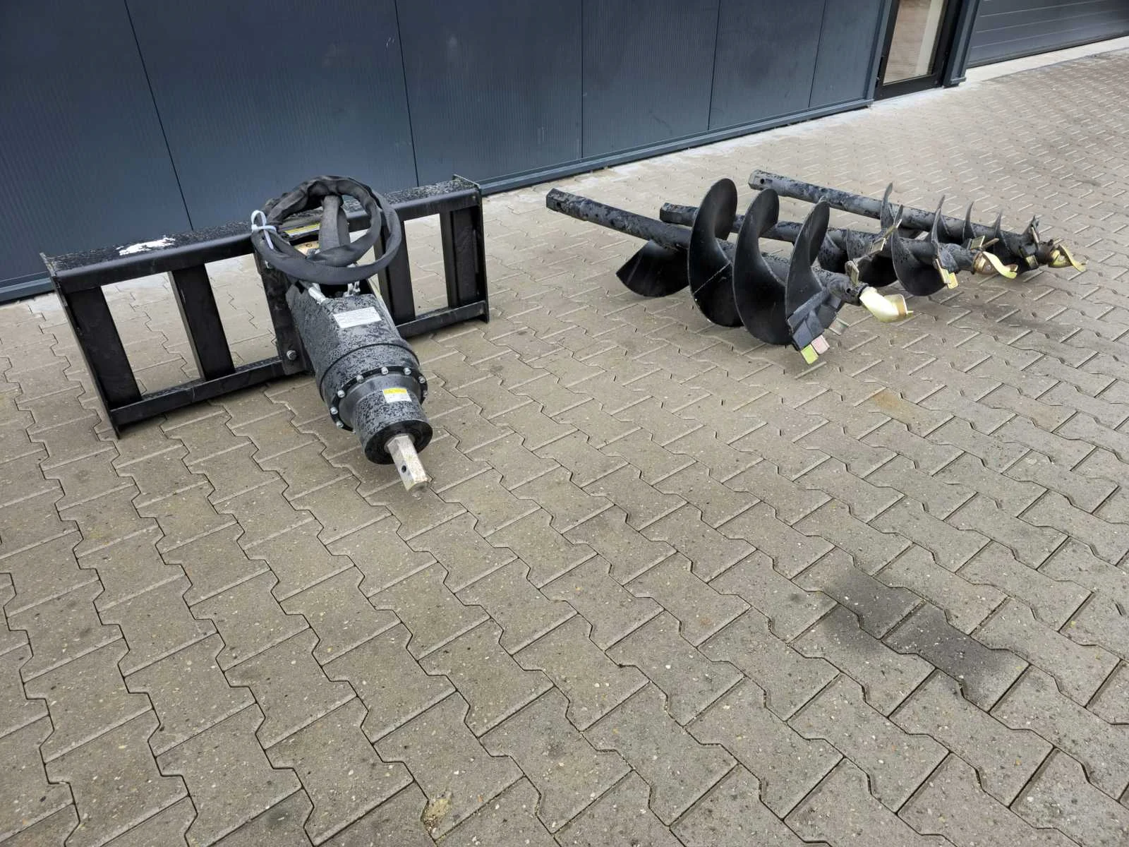 Voorzien van schranklader/“Bobcat” opname-/aanbouwplaat; 3 grondboren; boorlengte 160 cm; hydromotor (olievolumestroom 50-75 liter per minuut); boordiameter: 1x ø450 mm; 1x ø300 mm; 1x ø200 mm; transportafmeting (LxBxH): 1330x1250x810 mm; geleverd in krat; ongebruikt Merk: Rhino-Cross Type: 450/200 Bouwjaar: 2025 Werkdiepte: 1600mm Eigen gewicht: 340kg