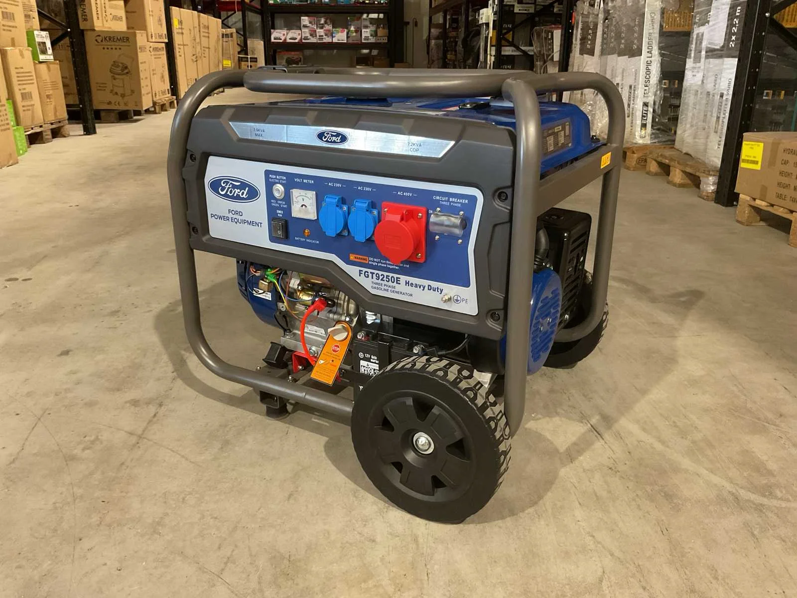 Voorzien van stalen frame; zekering; automatische stroom regelaar; voltage meter; 25 liter benzine tank; 420cc; 15PK; 2x 220V aansluiting; 1x 400V aansluiting; Zekering schakelaar; 2 wielen; Ongebruikt in doos (Afmeting transport verpakking 795x560x650 mm lxbxh, gewicht 93 kg) Merk: Ford Type: FGT9250E HEAVY DUTY Bouwjaar: 2025 Benzine: true Motorvermogen (kW): 7.2kW Luchtgekoeld: true Mobiel: true Machinegewicht: 93kg Totale afmeting L: 795mm Totale afmeting Breedte: 560mm Totale afmeting Hoogte: 650mm