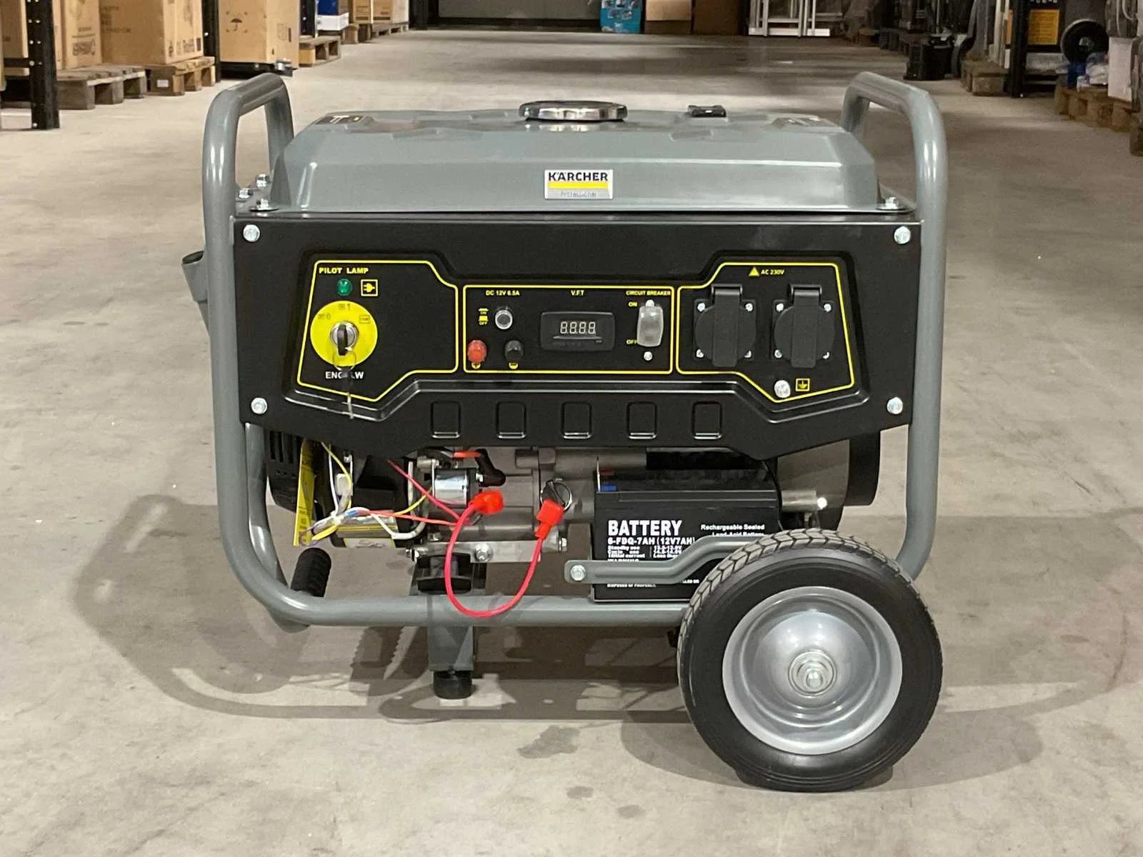 Voorzien van Spanning (Ph/V) 1 / 230; geluidsniveau (dB(A)) 74; Nominaal vermogen (kW)2,8; Vermogen (kW) 3; Type aandrijving: Benzine; Cilinderinhoud (cm³) 208; 1" adapter voor aansluiten van tuinslangen aan de drukzijde (kW/per uur) 4 / 5,4; Brandstofverbruik (l/u) 2,3; Tankinhoud (l) 15; Looptijd bij 50% output (u) 12; Looptijd bij 100% output (u) 6,5; DC-uitgang (12 V); Beschermingsklasse IP 23; Lage olie- en overbelastingsbeveiliging; Brandstofmeter; Eenfase-aansluiting type F (Schuko); Automatische spanningsregeling (AVR); Ongebruikt in doos Merk: Kärcher Type: PGG 3/1 Bouwjaar: 2025 Capaciteit.: 2.8kVA Benzine: true Motorvermogen (kW): 3kW Luchtgekoeld: true Mobiel: true Machinegewicht: 56.9kg Totale afmeting L: 7150mm Totale afmeting Breedte: 480mm Totale afmeting Hoogte: 470mm