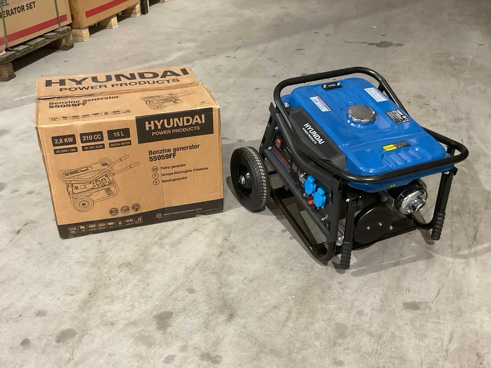 Voorzien van 210 cc OHV 4-takt luchtgekoelde motor; 15ltr tank euro 95; oliereservoir 600ml; 2x230V 16AAC output; 1x12V 8,3A DC outputAVR binnen een marge van +/- 3% van 230V; olie-alarm met automatisch uitschakel functie; Ongebruikt in doos. Merk: Hyundai Type: Benzine generator 55059FF / LB3500-YB Bouwjaar: 2025 Capaciteit.: 3kVA Benzine: true Type motor: Hyundai OHV 4-takt luchtgekoelde motor Aantal cilinders: 1 Motorvermogen (kW): 2.8kW Luchtgekoeld: true Mobiel: true Handboek aanwezig: true Machinegewicht: 42kg Totale afmeting L: 6100mm Totale afmeting Breedte: 4800mm Totale afmeting Hoogte: 4480mm