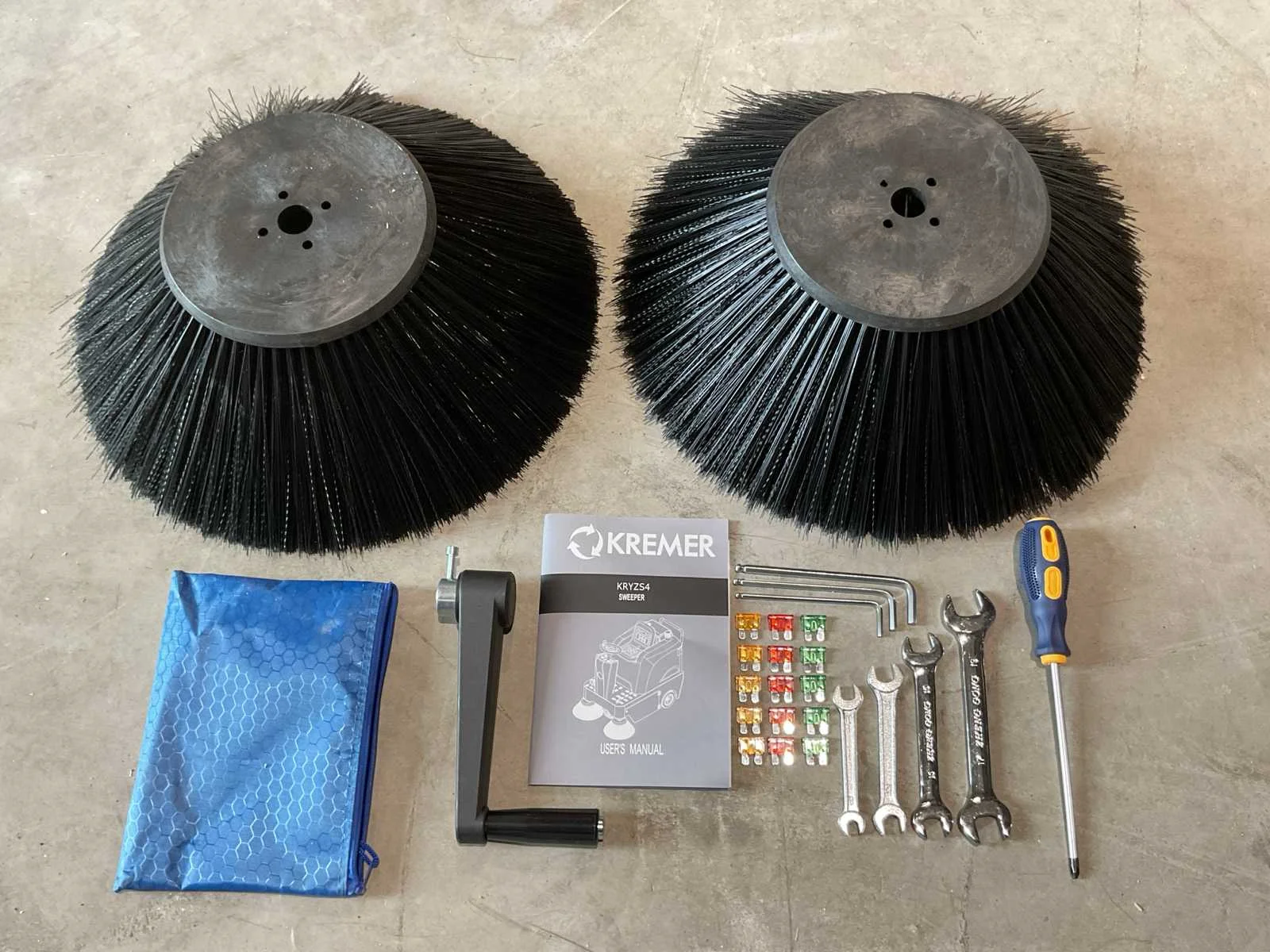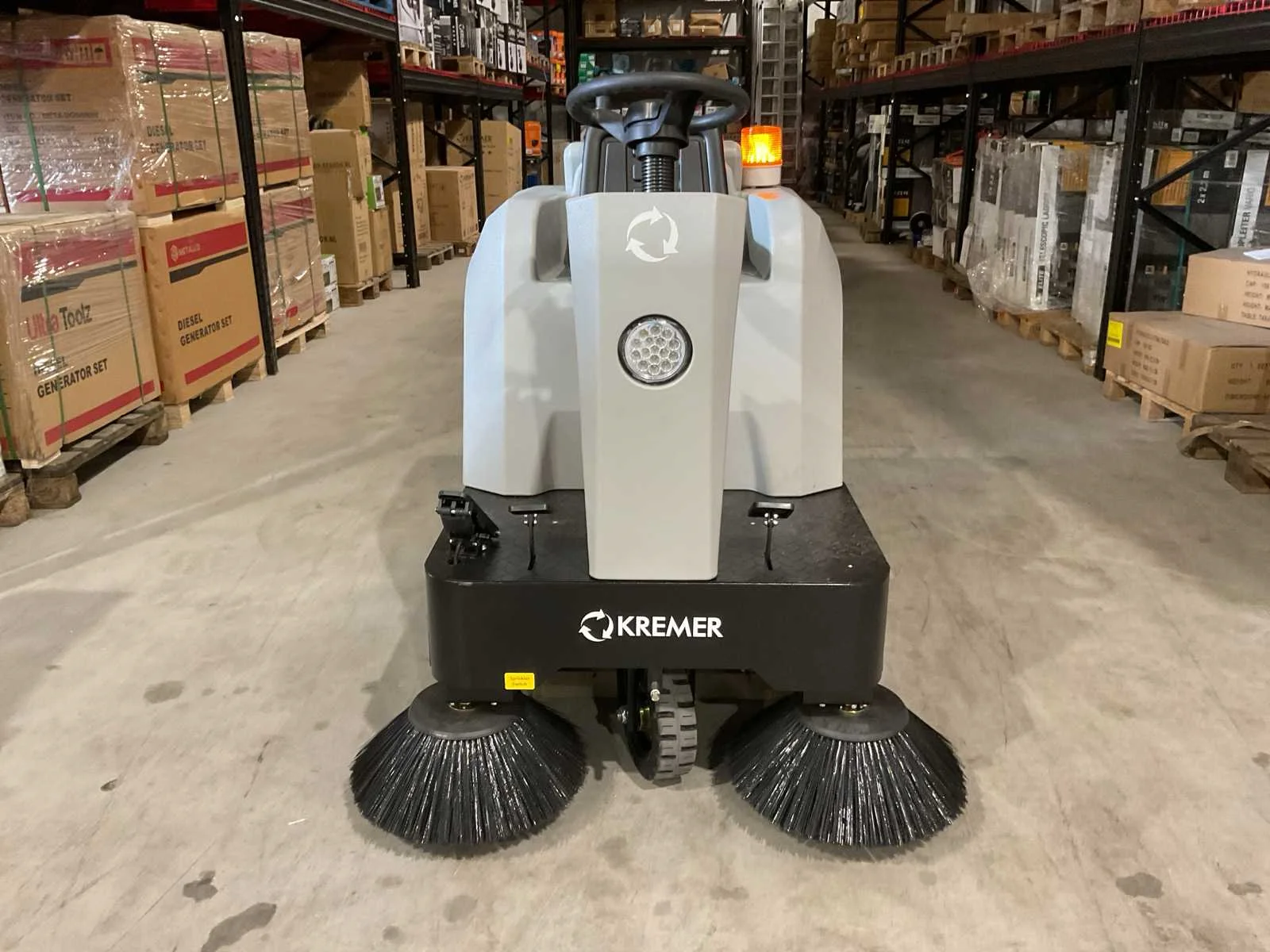 Voorzien van 2 reserve borstels; Afmetingen (LxBxH) 160 x 116 x 130 cm; Accu 48 V; Veegbreedte 1250 mm; Breedte zijborstels 2*400 mm; Loopmotor 700 W; Accucapaciteit 48 v/ 65 ah * 4 stuks; Totaalgewicht 396 kg; Breedte hoofdborstel 500 mm; Werkefficiëntie 6380 m2/h; Vuilcontainerinhoud 80L; Rolborstelmotor 700W; Loopsnelheid 0-10 Km/h; Ongebruikt Merk: Kremer Type: Sweeper KRYZ54 Bouwjaar: 2025 Werkbreedte: 1250mm Elektrisch: true Aansluiting: 48V Eigen gewicht: 396kg Totale afmeting L: 160mm Totale afmeting Breedte: 116mm Totale afmeting Hoogte: 130mm