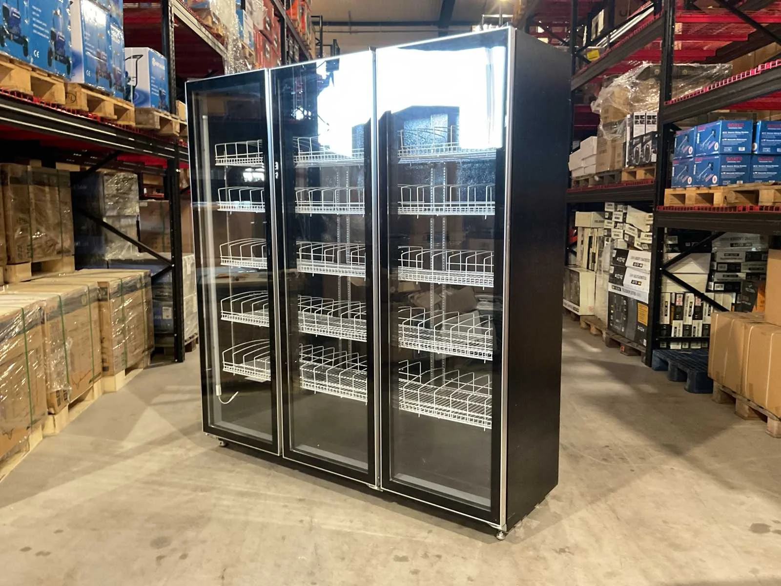 Voorzien van 3 glazen deur; Spanning: 220V / 50Hz; Koeltype: Ventilator gekoeld; Ontdooifunctie; Temperatuurbereik: 2 ~ 8°C; Verlichting; zwenkwielen; Ongebruikt Merk: Rhino-Cross-Catering Type: 3 Deuren WH03 Bouwjaar: 2025