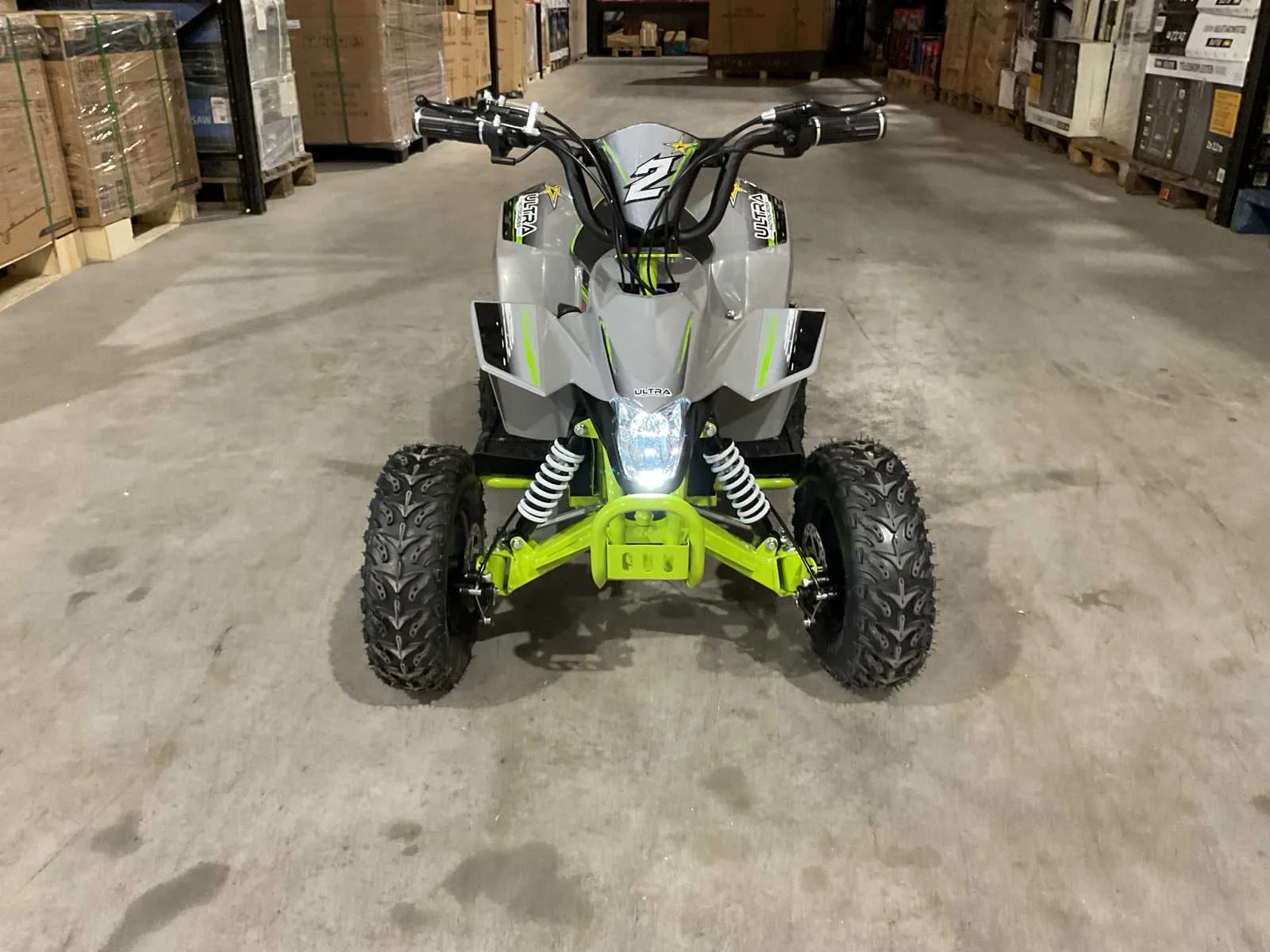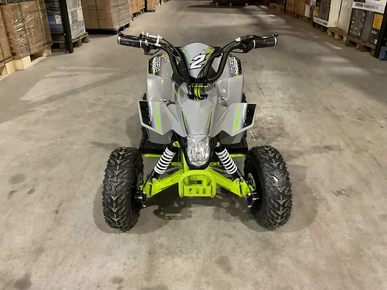 Voorzien van Krachtige 1000W motor; 36V accu; Snelheidsregelaar met 2 standen (10, 25 km/h); Achteruitschakelaar; Verlichting; Schijfremmen voor & achter; Ongebruikt Merk: Ultra Motocross Model: MA05E GR Product type: 1000W Kleur: Grijs/Groen