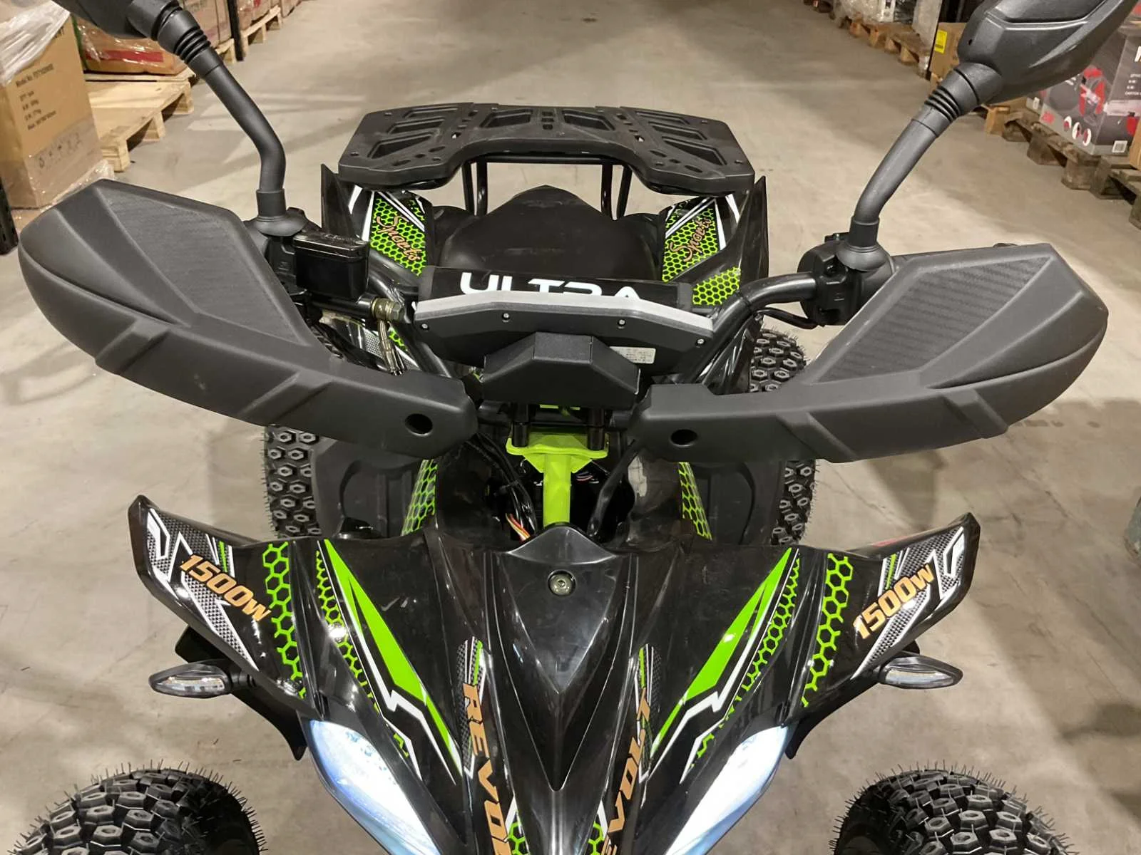 Voorzien van 60V 1500W elektrische motor; 3 verschillende snelheden; boost mode; led scherm; bandenmaat 8” inch; 2 sleutels; ongebruikt in krat (transport afmetingen 145x85x65 cm 120kg) Merk: Ultra Motocross Model: ATV005E Product type: ATX 1500 GR Gewicht: 110kg Aantal sleutels: 2 Transmissie: Automaat Bouwjaar: 2025 Brandstof: Elektrisch Kleur: Groen