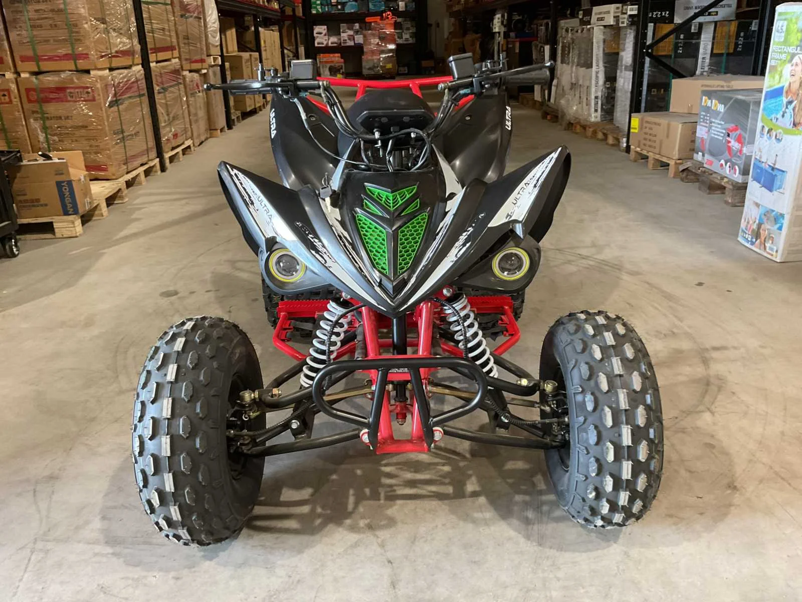 Voorzien van elektrische start; 4 takt; 125 cc; hydraulische schijfremmen; bandenmaat 8” inch; LCD scherm; 2 sleutels; ongebruikt in krat (transport afmetingen 145x90x65 cm 120kg) Merk: Ultra Motocross Model: Miniraptor125 Product type: ATX 125 Raptor ZW Gewicht: 105kg Transmissie: Semi automaat Bouwjaar: 2025 Vermogen (pk): 9hp Cilinderinhoud: 125cc Kleur: Zwart