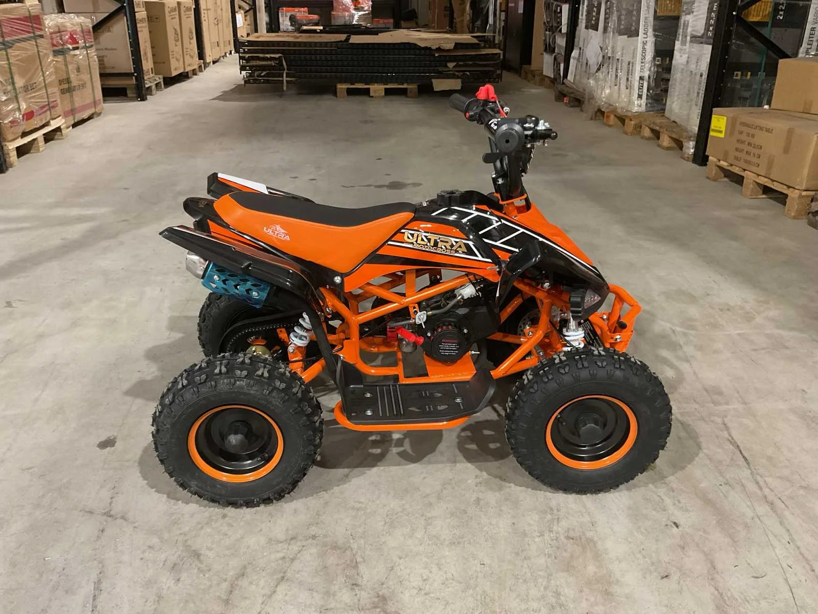 Voorzien van 49cc benzine motor; 2 takt; trek start; 3 verschillende snelheden; kill-switch; bandenmaat 6” inch; 2 sleutels; ongebruikt in doos (transport afmetingen 100x55x45 cm 36kg) Merk: Ultra Motocross Model: MA03 Product type: ATX 49 OR Gewicht: 34kg Aantal sleutels: 2 Transmissie: Automaat Bouwjaar: 2025 Cilinderinhoud: 49cc Brandstof: Benzine 2 Takt Kleur: Oranje