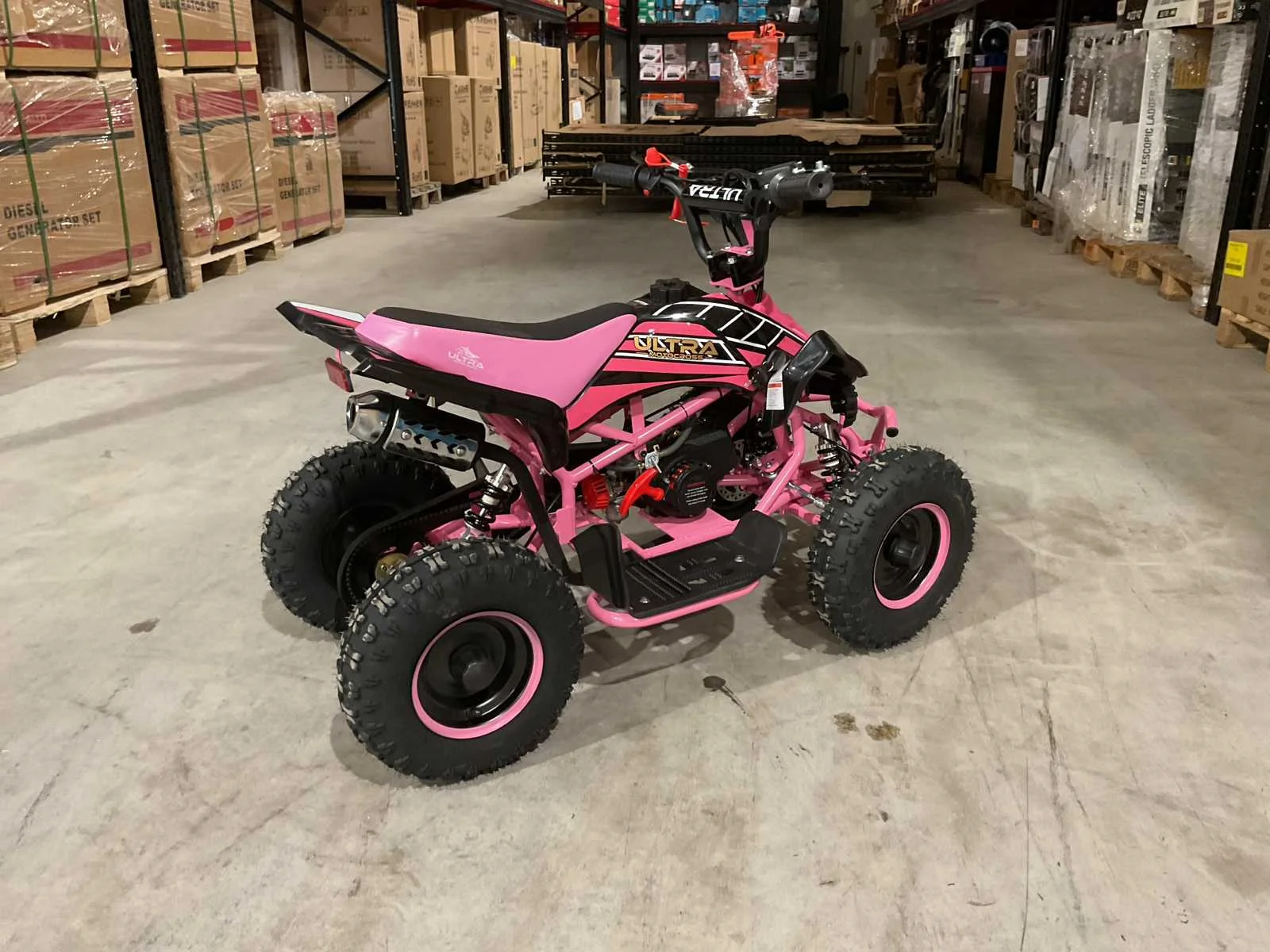 Voorzien van 49cc benzine motor; 2 takt; trek start; 3 verschillende snelheden; kill-switch; bandenmaat 6” inch; 2 sleutels; ongebruikt in doos (transport afmetingen 100x55x45 cm 36kg) Merk: Ultra Motocross Model: MA03 Product type: ATX 49 RZ Gewicht: 34kg Aantal sleutels: 2 Transmissie: Automaat Bouwjaar: 2025 Cilinderinhoud: 49cc Brandstof: Benzine 2 Takt Kleur: Roze