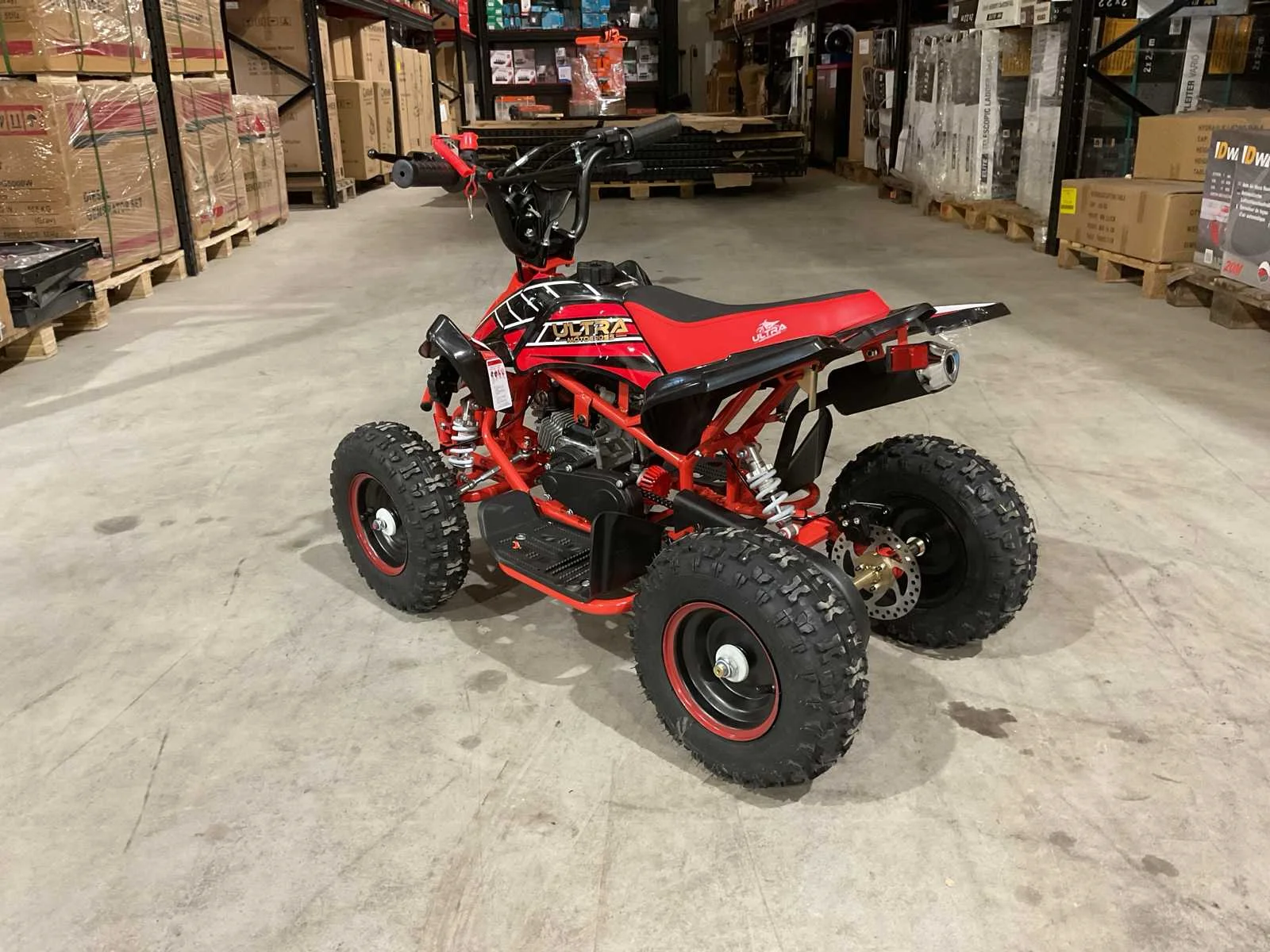 Voorzien van 49cc benzine motor; 2 takt; trek start; 3 verschillende snelheden; kill-switch; bandenmaat 6” inch; 2 sleutels; ongebruikt in doos (transport afmetingen 100x55x45 cm 36kg) Merk: Ultra Motocross Model: MA03 Product type: ATX 49 RD Gewicht: 34kg Aantal sleutels: 2 Transmissie: Automaat Bouwjaar: 2025 Cilinderinhoud: 49cc Brandstof: Benzine 2 Takt Kleur: Rood