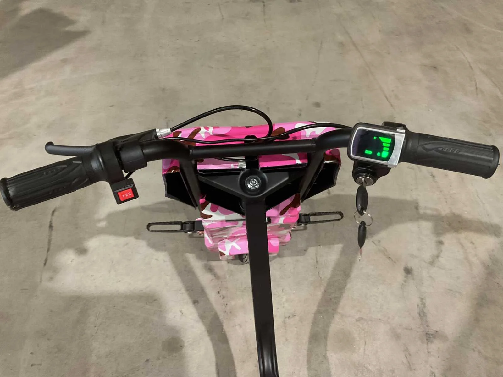 Voorzien van 250W elektrische motor; bandenmaat 6,5” inch; ongebruikt in doos (transport afmetingen 70x55x30 cm) Merk: Ultra Motocross Model: 250W Type: RZ Gewicht: 11kg Kleur: Roze Transmissie: Automaat Aantal sleutels: 2 Bouwjaar: 2025