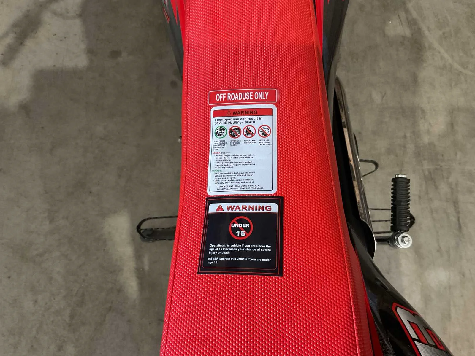 Voorzien van 110cc motor; Manuele koppeling; kickstart; Wiel/velg: V: 90/100-14 (14") A: 70/100-17 (17"); Hydraulische schijfrem; olieschokdemper; Enkele stalen uitlaatpijp; Maximale snelheid: 70 km/u; Ongebruikt in doos (Transport verpakking: 1295 x 375 x 620 mm 75kg) Merk: Ultra Motocross Model: DB001 RD Type: 110CC Cilinderinhoud: 110cc Gewicht: 68kg Transmissie: Manuele Bouwjaar: 2025