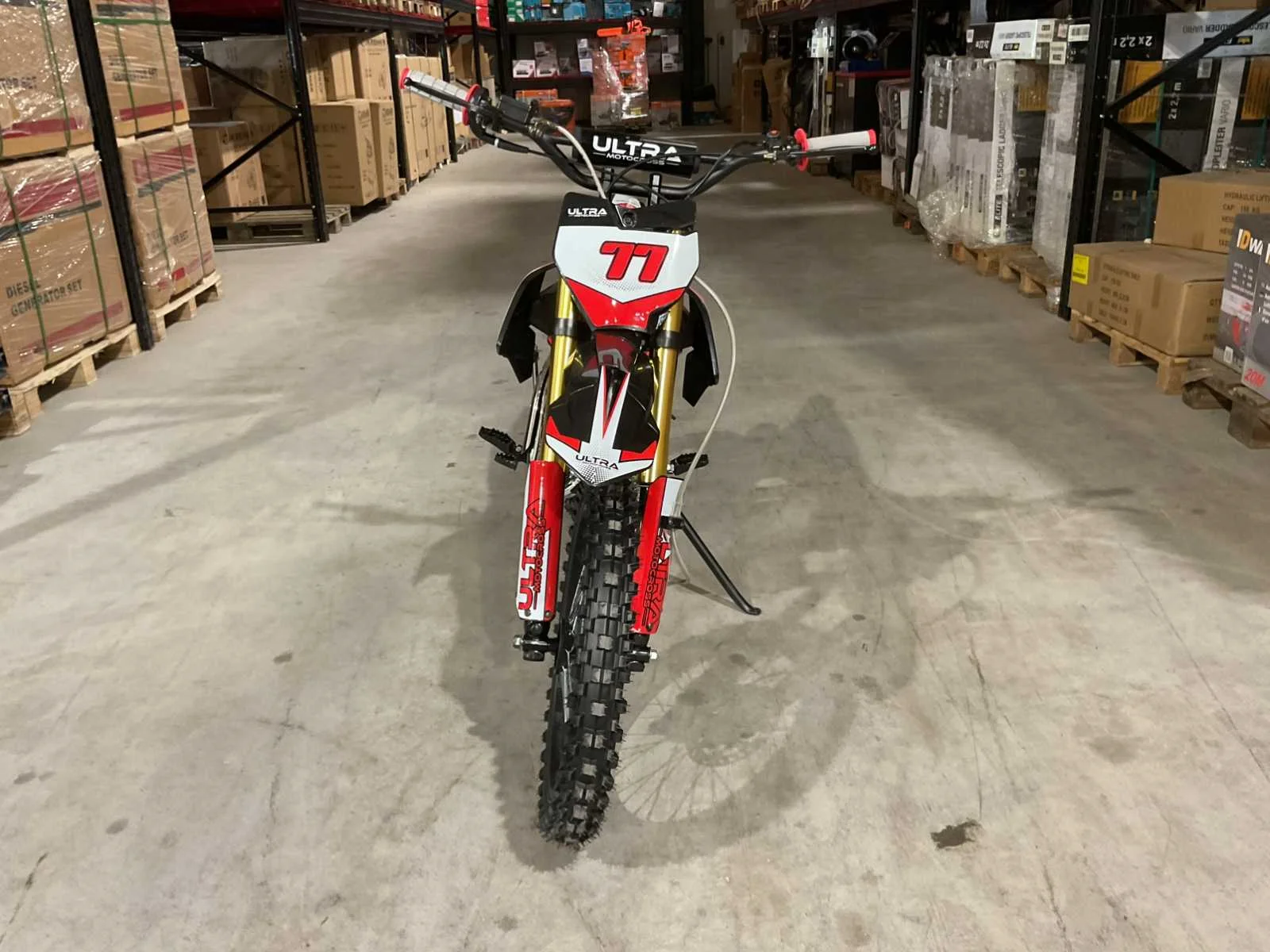 Voorzien van 125cc motor; 4 takt; 11 HP; hydraulische schijfremmen; bandenmaat voor 17” inch achter 14” inch; ongebruikt in doos (transport afmetingen 135x45x65 cm Gewicht 78kg) Merk: Ultra Motocross Model: DB003 Type: ILX 125cc RD Cilinderinhoud: 125cc Gewicht: 71kg Kleur: Rood Transmissie: Schakel Aantal sleutels: 2 Bouwjaar: 2025