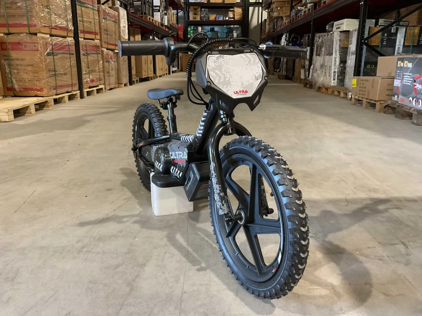 Voorzien van 250W elektrische motor; 2 verschillende snelheden; verstelbaar zadel; verwijderbare accu; bandenmaat 16” inch; ongebruikt in doos (transport afmetingen 105x25x50 cm) Merk: Ultra Motocross Product type: TRX250 ZW Kleur: Zwart Gewicht: 12kg Lengte: 105cm Breedte: 25cm Hoogte: 50cm