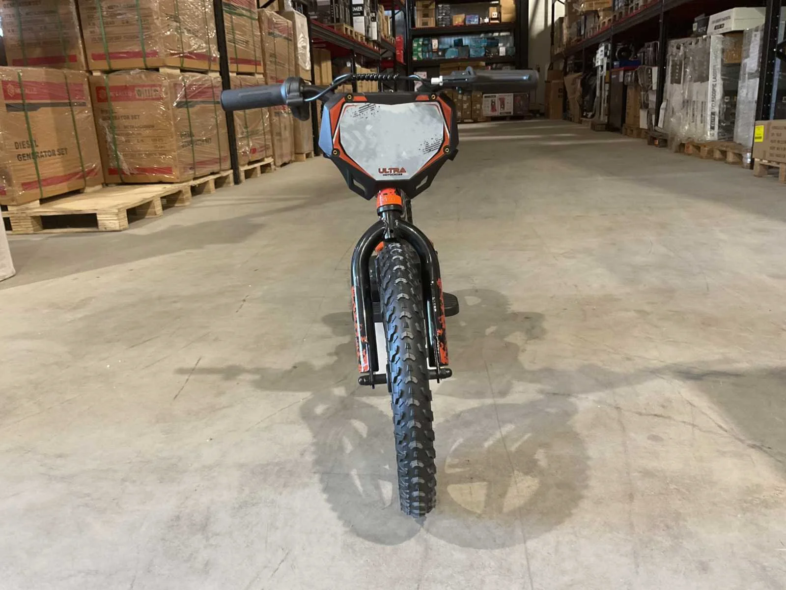 Voorzien van 250W elektrische motor; 2 verschillende snelheden; verstelbaar zadel; verwijderbare accu; bandenmaat 16” inch; ongebruikt in doos (transport afmetingen 105x25x50 cm) Merk: Ultra Motocross Product type: TRX250 OR Kleur: Oranje Gewicht: 12kg