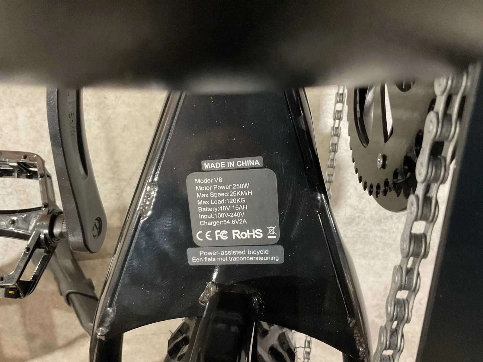 Merk: Ouxi Model: Fatbike V8 Product type: Enkele accu Gewicht: 47kg Lengte: 138cm Breedte: 28.5cm Hoogte: 87cm