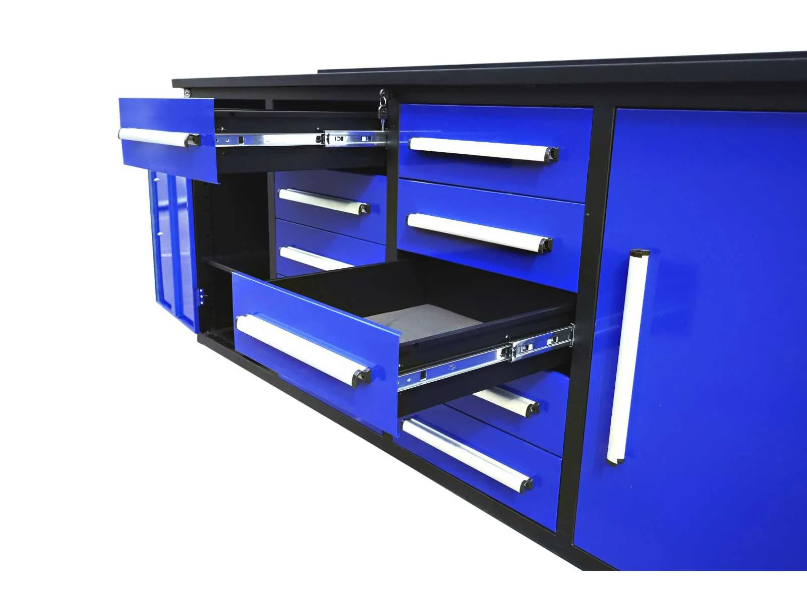 Voorzien van Werkblad; 10 lades; 2 deuren; afsluitbaar met sleutels; ongebruikt Merk: Stahlworks Product type: SW-12 Industrial Blue Breedte: 2230mm Lengte: 650mm Hoogte: 980mm