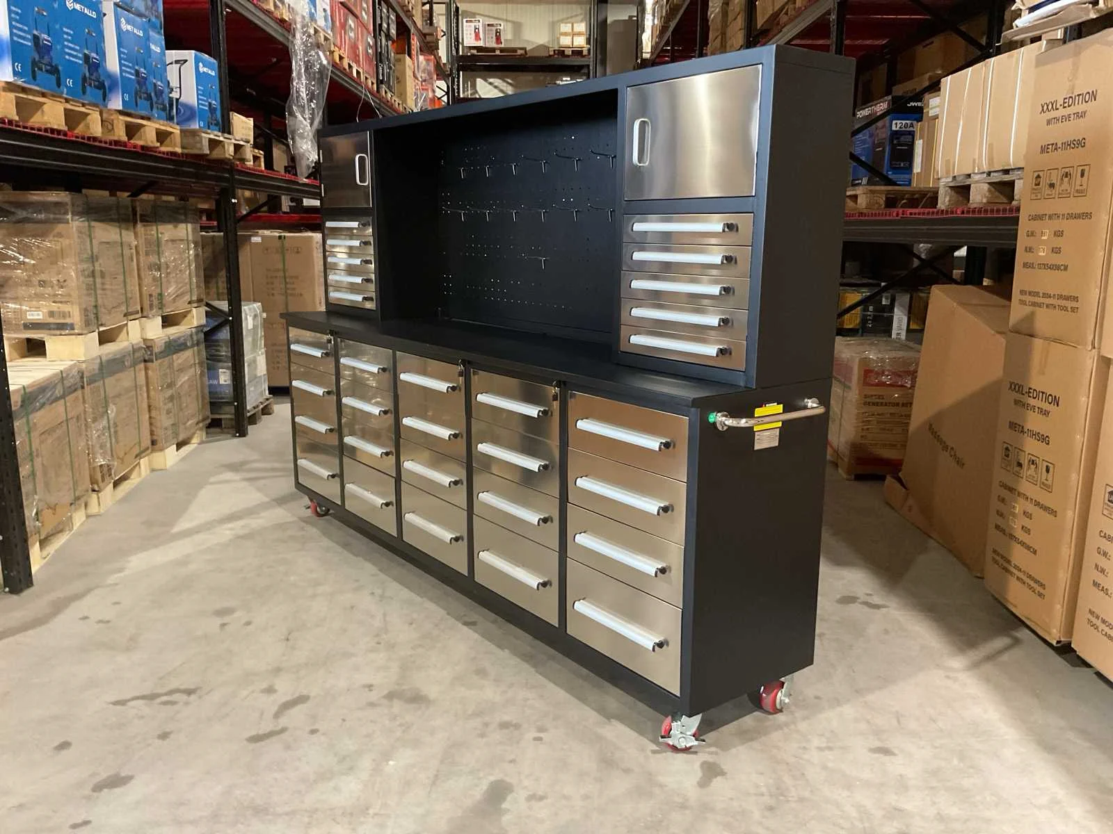Voorzien van Gepoedercoat staal; 30 lades; 2 kasten; Verrijdbaar; Sleutels voor afsluiten; Ongebruikt Merk: Rhino-Cross-Tools Type: H10FT-30D-2 01B Zwart/RVS Bouwjaar: 2025