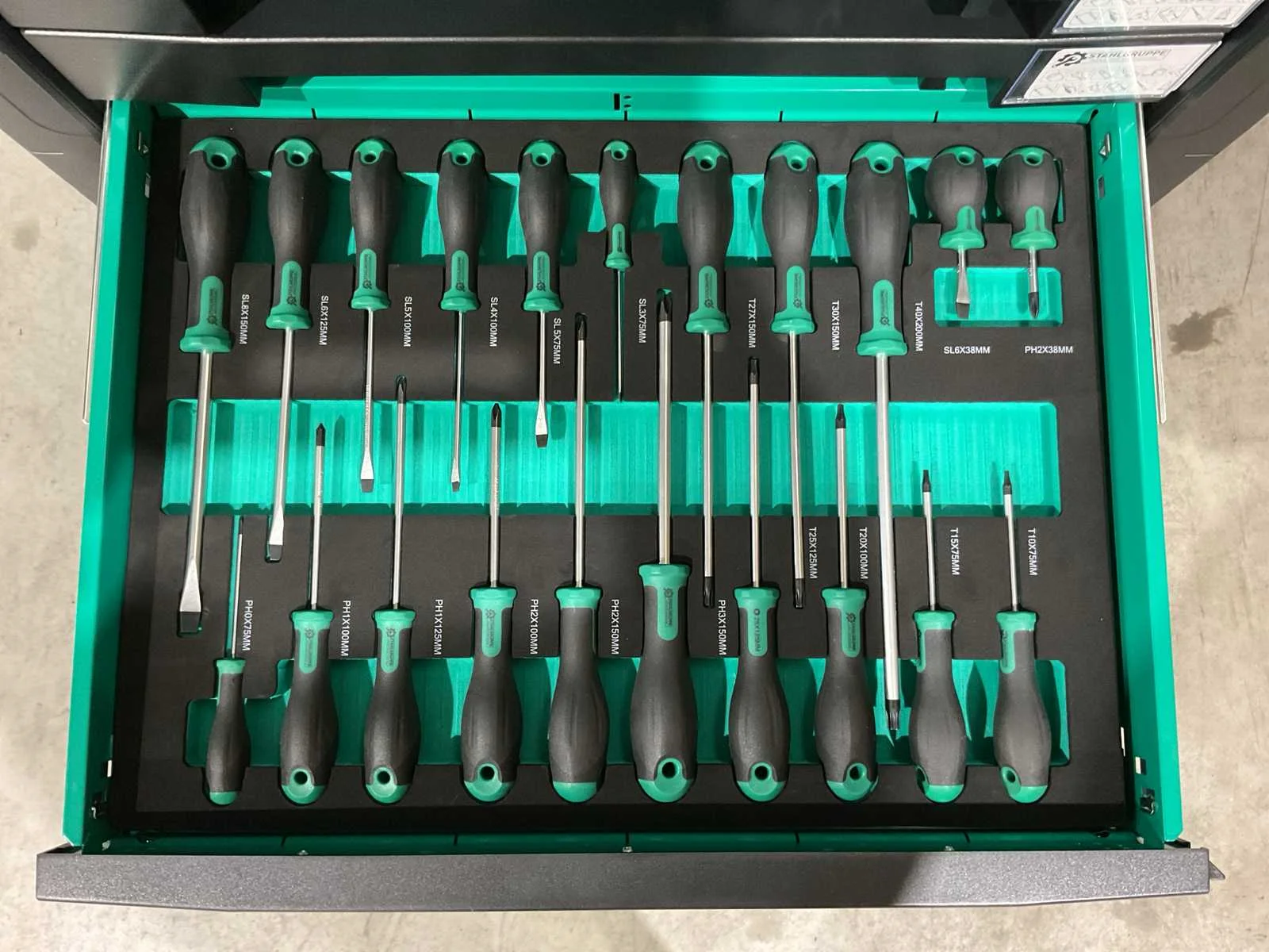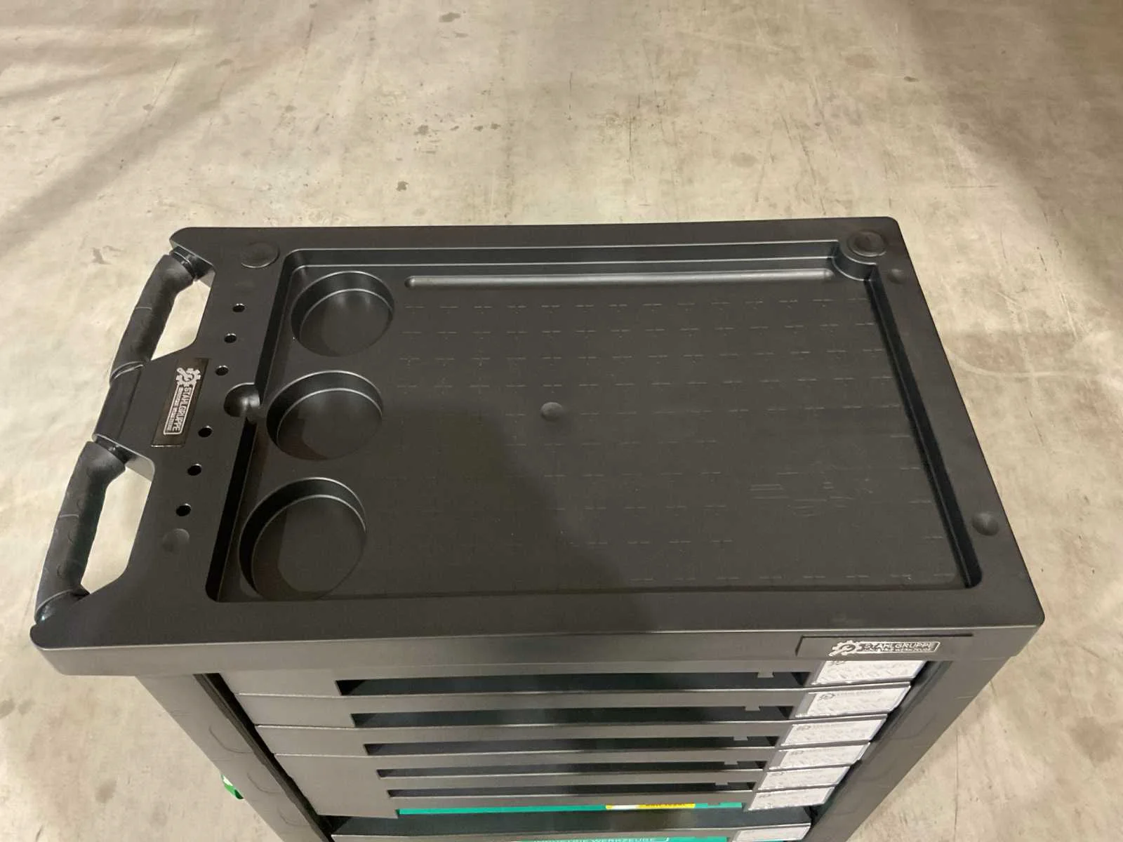 Voorzien van 7 lades waarvan 5 gevuld met gereedschap; professioneel chroom-vanadium gereedschap; heavy duty gereedschapswagen; stevig werkblad; 4 wielen; stevig handvat; ongebruikt in doos (transport afmetingen 80x50x105 cm) Merk: Stahlgruppe Type: SG9 Bouwjaar: 2025 Aantal laden: 7 Met inhoud: true Eigen gewicht: 78kg Totale afmeting L: 800mm Totale afmeting Breedte: 500mm Totale afmeting Hoogte: 1050mm