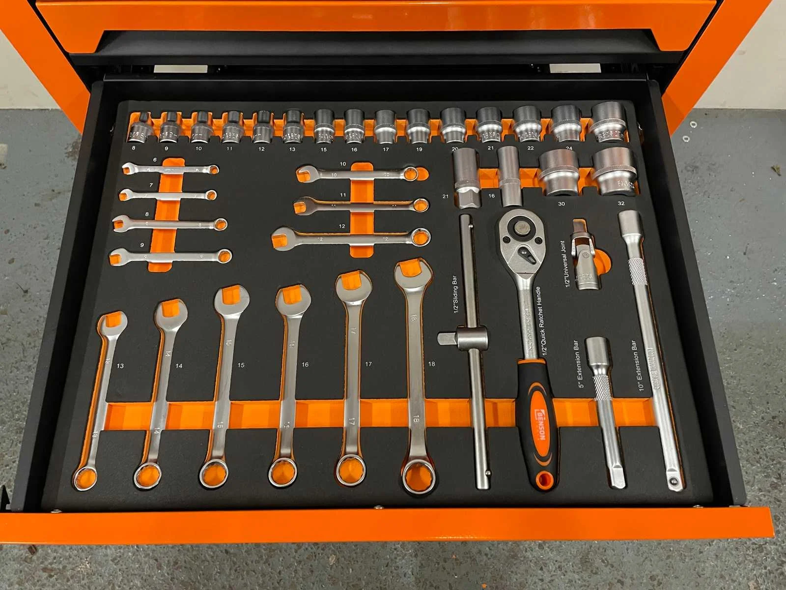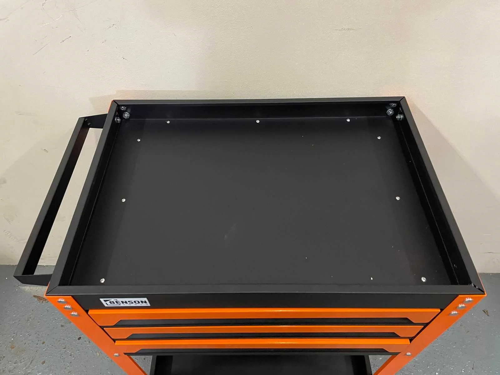 Voorzien van 73 delig; 3 laden; 2 zwenkwielen; ongebruikt in doos Merk: Benson Bouwjaar: 2024 Aantal laden: 3 Met inhoud: true Totale afmeting L: 665mm Totale afmeting Breedte: 465mm Totale afmeting Hoogte: 885mm