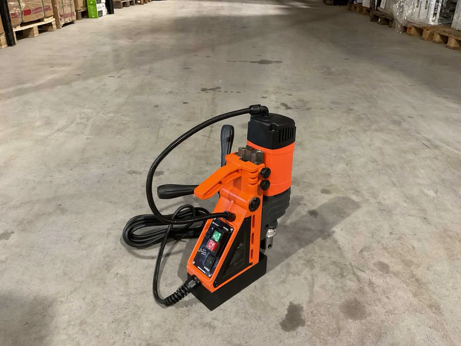 Voorzien van zekering; 3 inbussleutels; snelbinder; 3 handvaten; Boorcapaciteit: 35 mm; Boordiepte: 210 mm; Snelheid: Tot 830 rpm; Kleefkracht: 16000 N; Vermogen: 1600 kW; Aansluiting: 230 V; Automatisch koelsysteem; ongebruikt in doos Merk: Daewoo Type: DAMD1600 Bouwjaar: 2025 Boorcapaciteit: 35mm Boordiepte: 210mm Snelheid van n =: 830rpm Snelheid tot n =: 830rpm Kleefkracht: 16000N Vermogen: 1600kW Aansluiting: 230V Met koffer: true