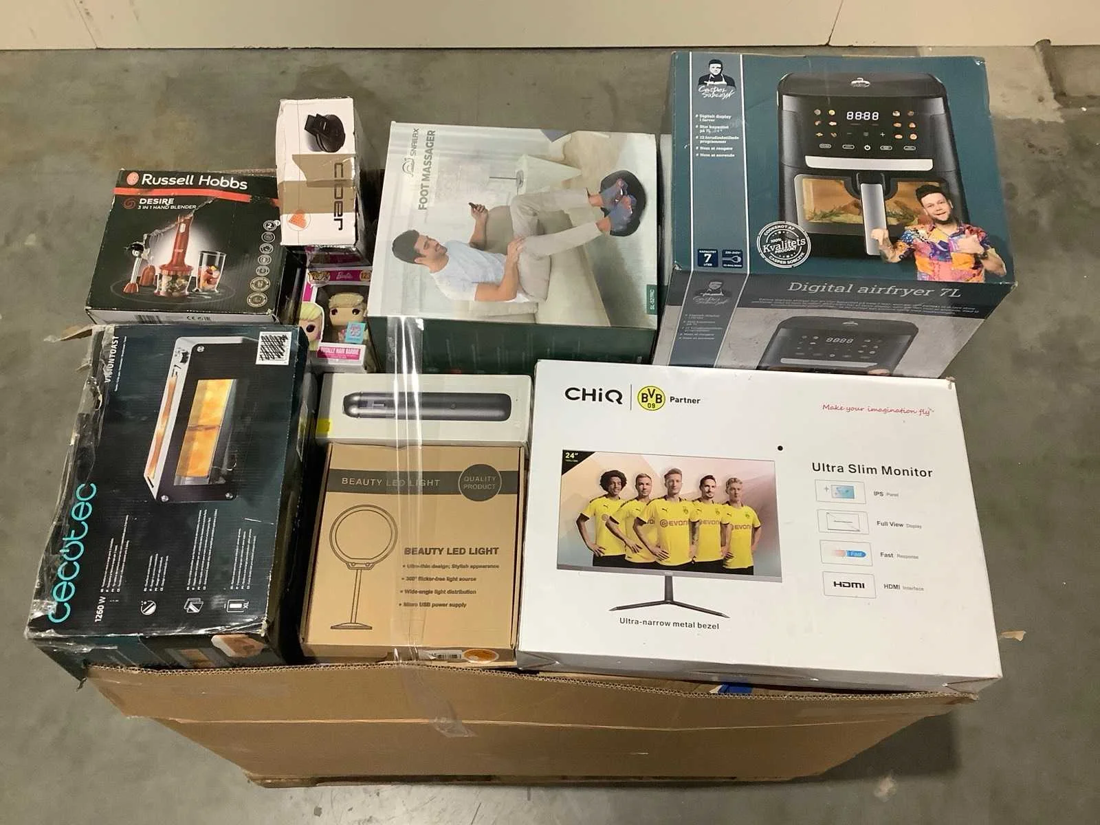 Dit betreft een partij retourgoederen van een grote online retailer. De partij bestaat uit diverse productcategorieën. Ongecontroleerd: werking onbekend (mix van Nieuw, werkend, incompleet, beschadigd, te gebruiken voor onderdelen). Kom op de kijkdag om te om zo een goed beeld te krijgen van de reden van retour. Merk: Pallet