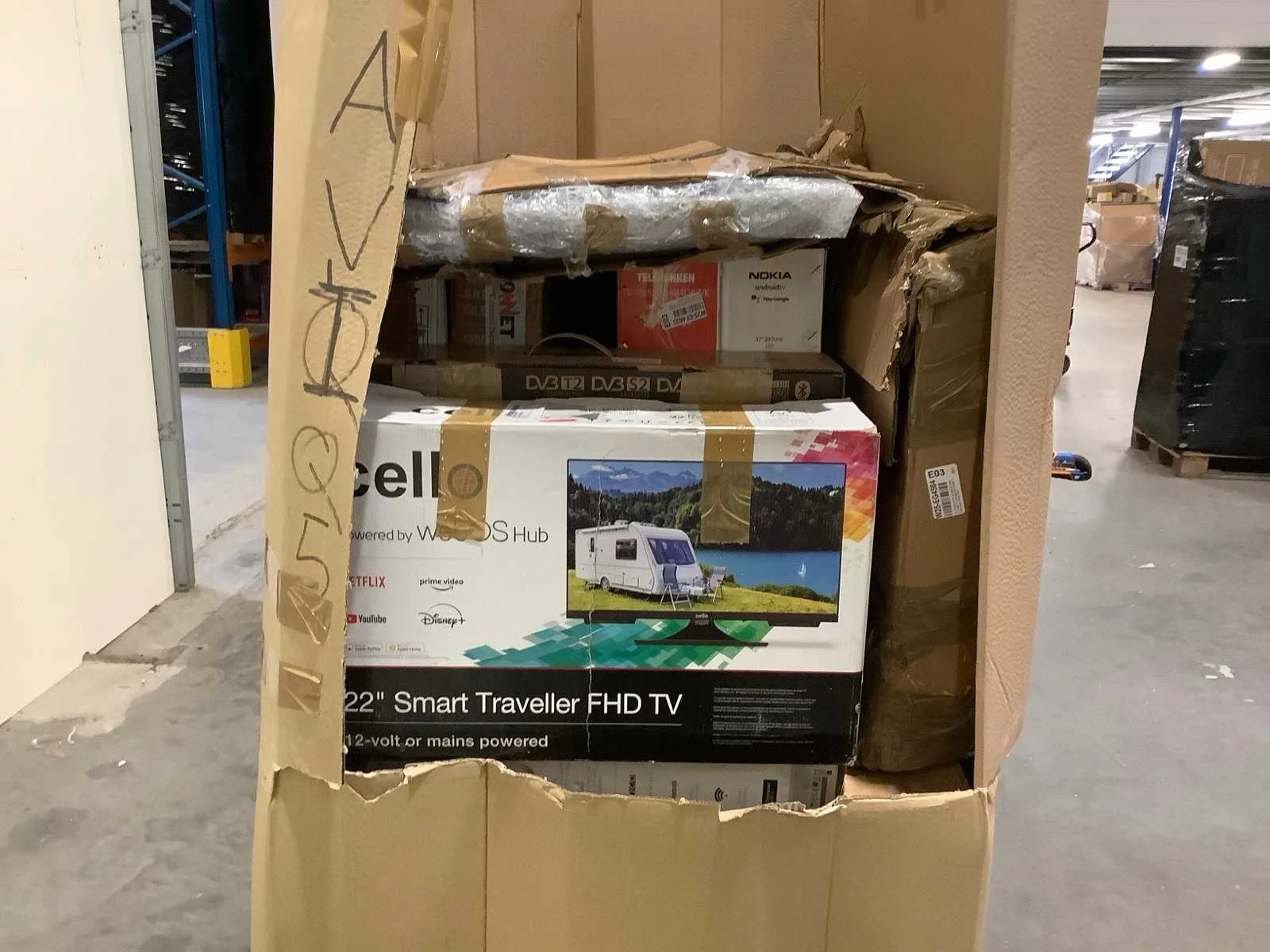 Dit betreft een partij televisies retourgoederen van een grote online retailer. De partij bestaat uit diverse diverse maten televisies. Aantal stuks: 16 Retailwaarde: €3.867,- De televisies zijn niet werkend en zijn te gebruiken voor onderdelen. Kom op de kijkdag om te om zo een goed beeld te krijgen van de reden van retour. Zie foto's voor lijst met inhoud. Bezorgtermijn 14 dagen Merk: Pallet Retourgoederen