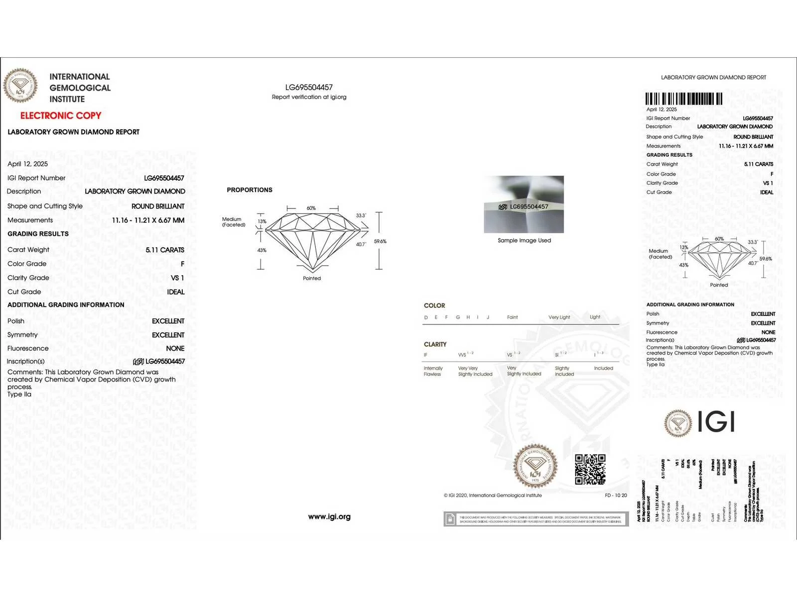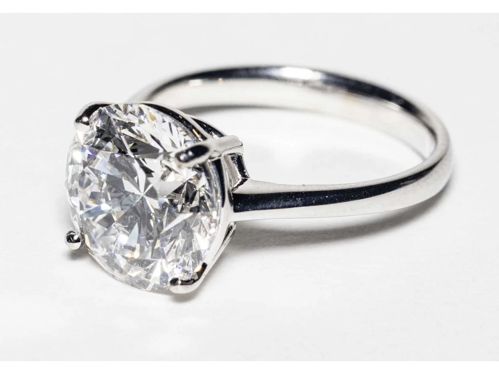 Ongebruikt Vorm: rond Briljant Gewicht: 5,11 CRT Kleur: F Duidelijkheid: VS1 Pools: Uitstekend Symmetrie: Uitstekend Rapportnummer IGI 18K wit goud Met IGI-certificaat Bezichtiging op afspraak Product type: 18 karaat wit goud Kleur diamant: F Slijpvorm diamant: Rond Briljant Ringmaat: 54 Slijpvorm: rond Certificaat: Ja Kleur: VS1 Materiaal: 18 karaat goud Lage schatting: 9900€ Hoge schatting: 11900€