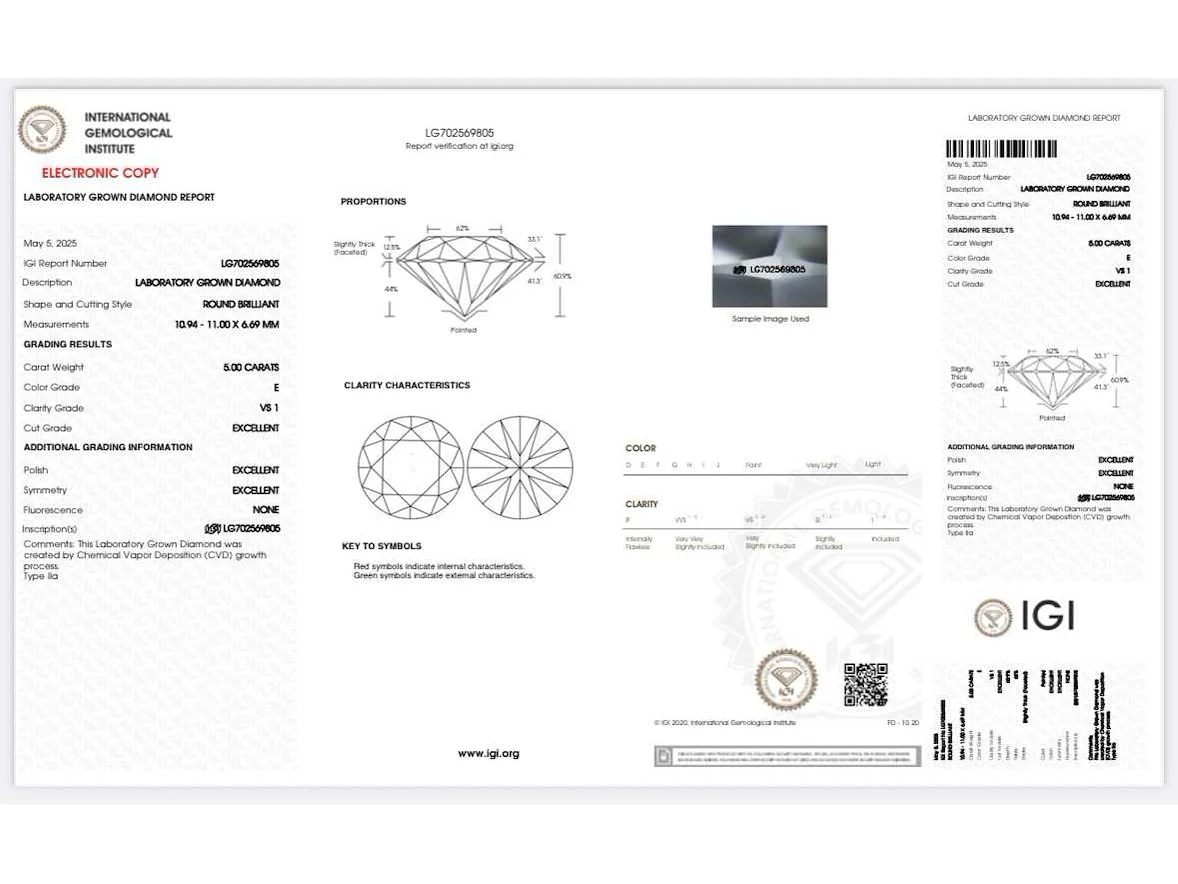 Ongebruikt Vorm: Rond Briljant Gewicht: 5,08 crt Kleur: E Duidelijkheid: VS1 Pools: Uitstekend Symmetrie: Uitstekend 18K wit goud Met IGI-certificaat Bezichtiging op afspraak Product type: 18 karaat wit goud Slijpvorm diamant: Rond Briljant Ringmaat: 54 Certificaat: International Gemological institute (IGI) Materiaal: 18 karaat wit goud Lage schatting: 10000€ Hoge schatting: 11800€