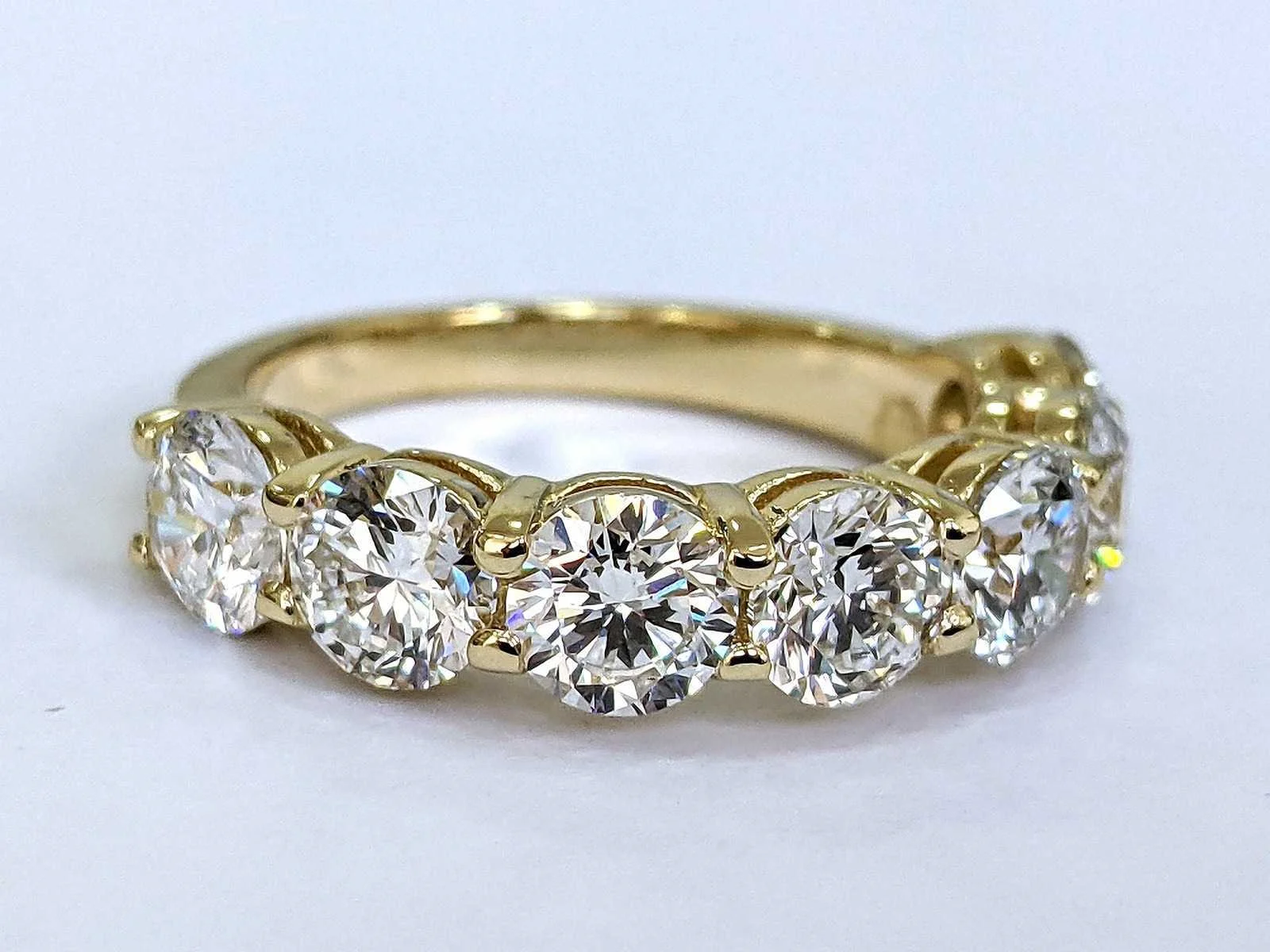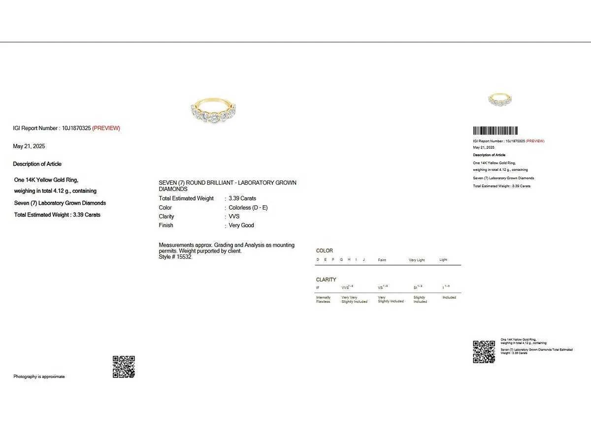 Diamant Slijpvorm: Rond Briljant Karaat: 3,39 cttw / 7 stenen Kleur: Kleurloos (D - E) Duidelijkheid: VVS Bezichtiging op afspraak Product type: geel goud Ringmaat: 56 Certificaat: Ja Lage schatting: 3800€