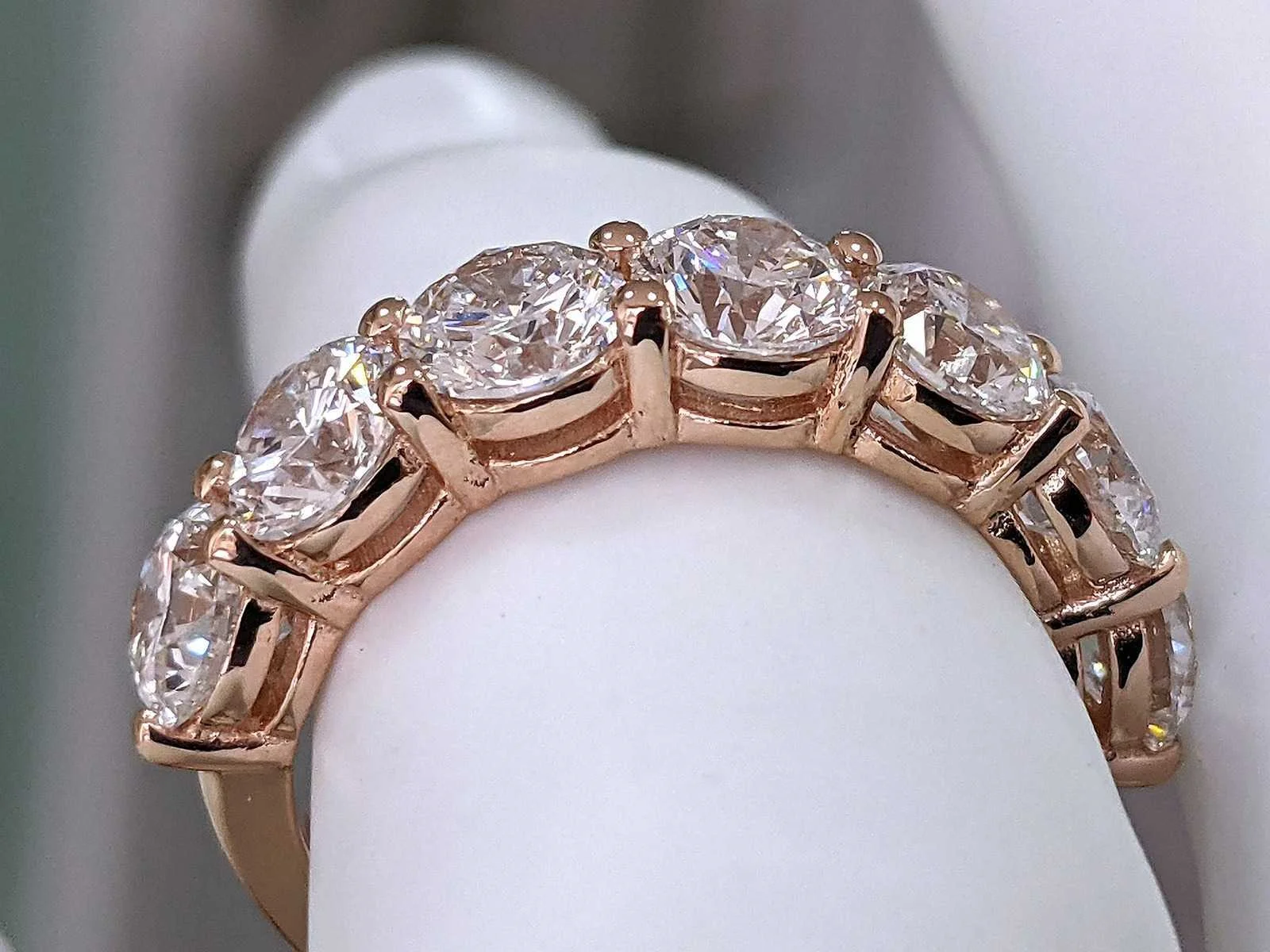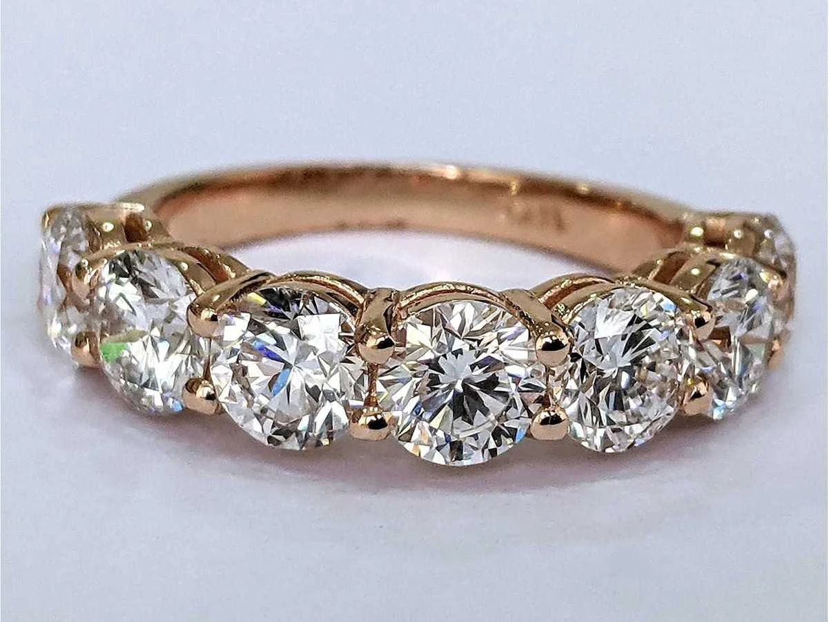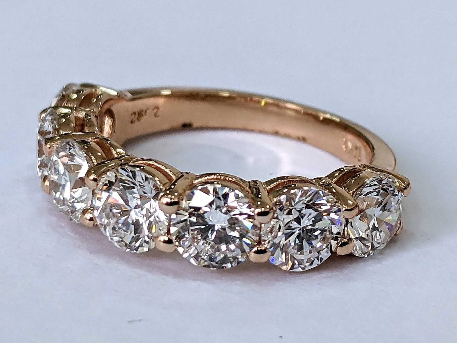 Diamant Slijpvorm: Rond Briljant Karaat: 3,41 cttw / 7 stenen Kleur: Kleurloos (D - E) Duidelijkheid: VVS Bezichtiging op afspraak Product type: Rose goud Ringmaat: 56 Certificaat: Ja Lage schatting: 3700€