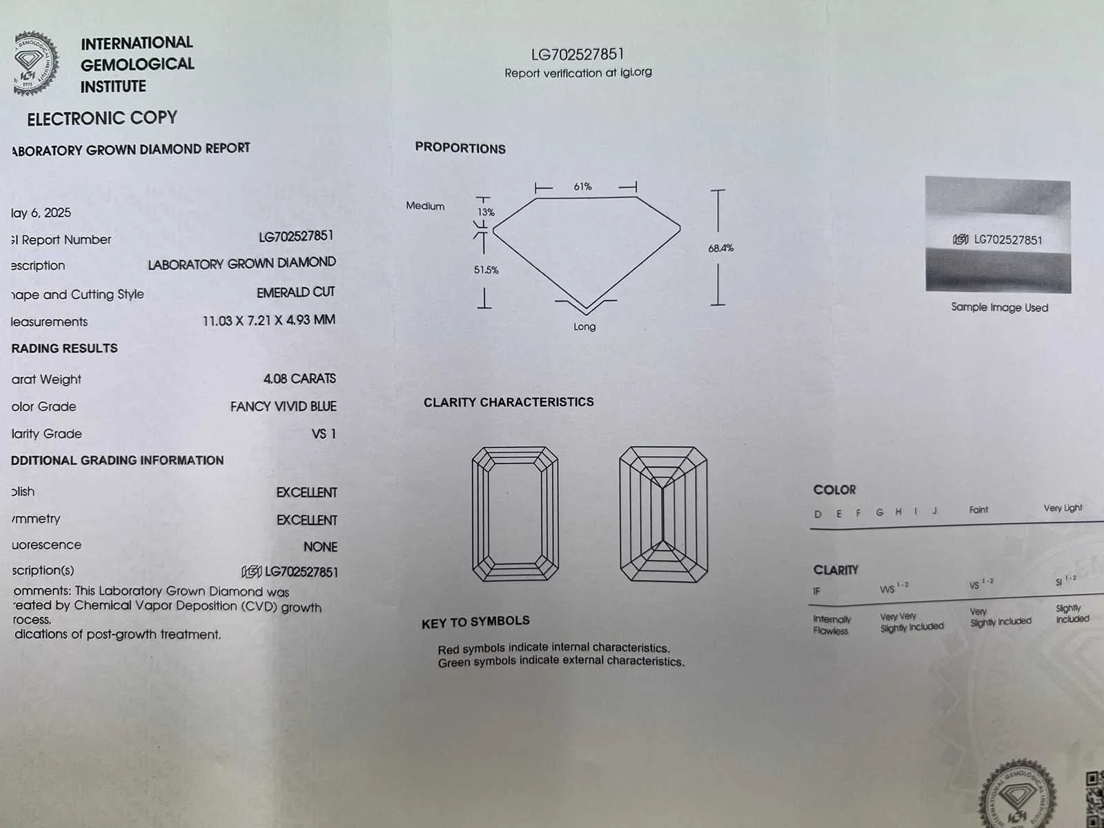 Metaal: geelgoud Hoofdsteen: diamant Natuurlijke fancy kleur: blauw lab-grown Gewicht hoofdsteen: 4,08 crt Omringende stenen: 0,20 crt Helderheid VS1 Materiaal: Geelgoud Ringmaat : 54 Certificaat: Ja