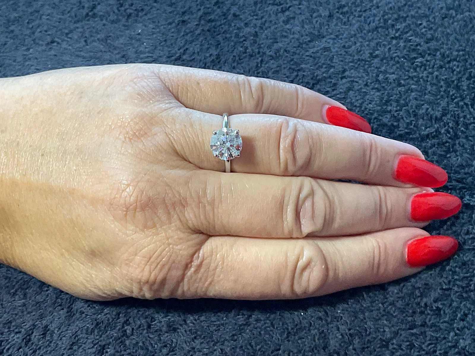 Laboratory Grown Diamond graded by IGI Set In 18kt White Gold Ring 750. Shape: Round Brilliant Weight: 3.10CT Color: F Clarity: VS1 Cut: Ideal Polish: Excellent Symmetry: Excellent Fluorescence: None Report Number IGI: LG671423527 Ring Weight: 2.25 gr. Metal: White Gold Purity: 18kt (750) Schatting detailhandel € 6.800 - € 7.800 Bezichtiging op afspraak. Versturen mogelijk tegen meerprijs. Materiaal: 18 karaat wit goud 750 Kleur diamant: F Ringmaat : 53 Certificaat: ja IGI