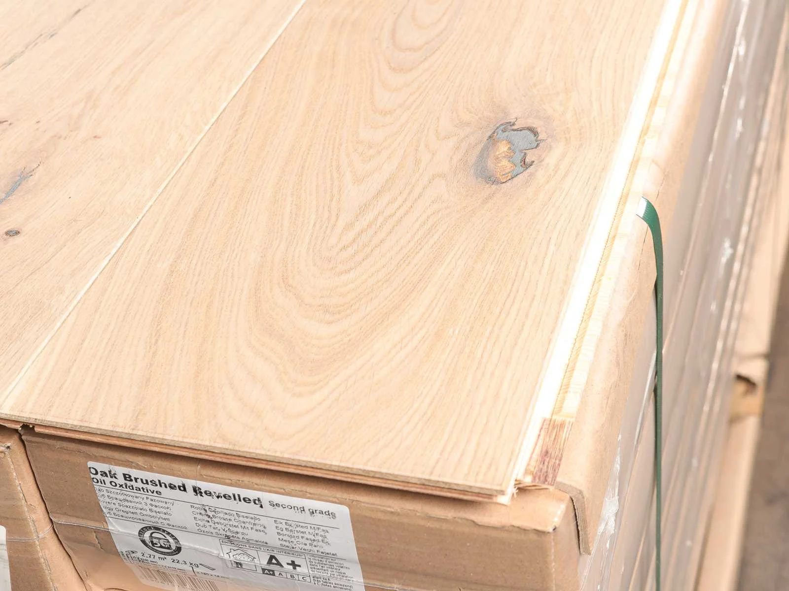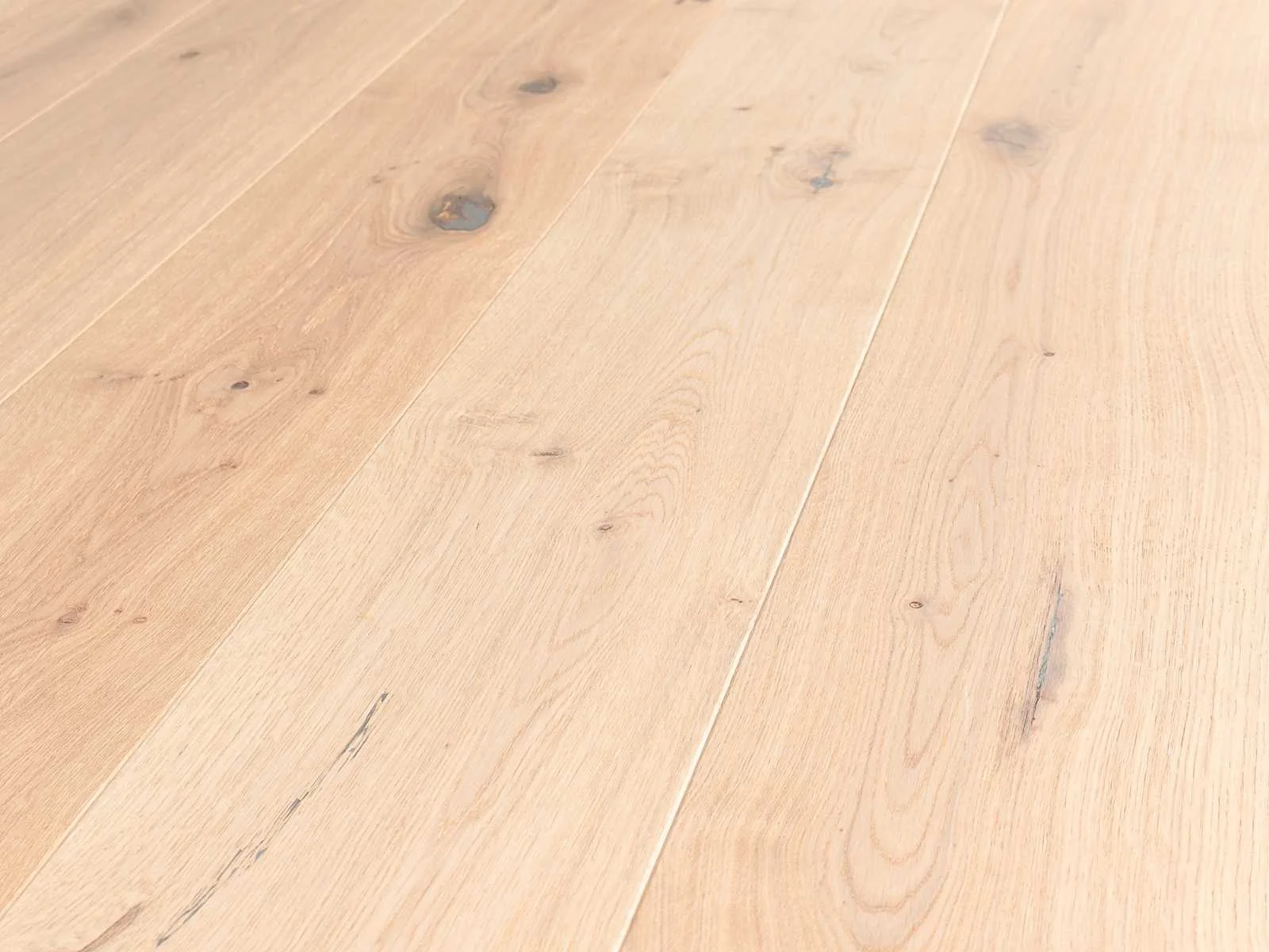 Gemakkelijk te leggen wegens 5G clicksysteem, geschikt voor alle soorten vloer en koelverwarmingen, kwaliteits parketvloer, vloer is van hoogwaardig Europees eiken hout, kant en klaar behandeld, dikte 14 mm, toplaag 3 mm, 39 pakken a 2,77 m2 Merk: Ambiance Product type: Parket Oppervlakte: 108m² Geschikt voor vloerverwarming: Ja V-groef: Ja Afwerking: Wit geolied, geoxideerd, geborsteld, met v-groef Aantal m² per verpakking: 2.77m² Kleur: White oiled oak 804 Gewicht: 850kg Lengte: 2200mm Breedte: 180mm Materiaal: Eiken multiplank