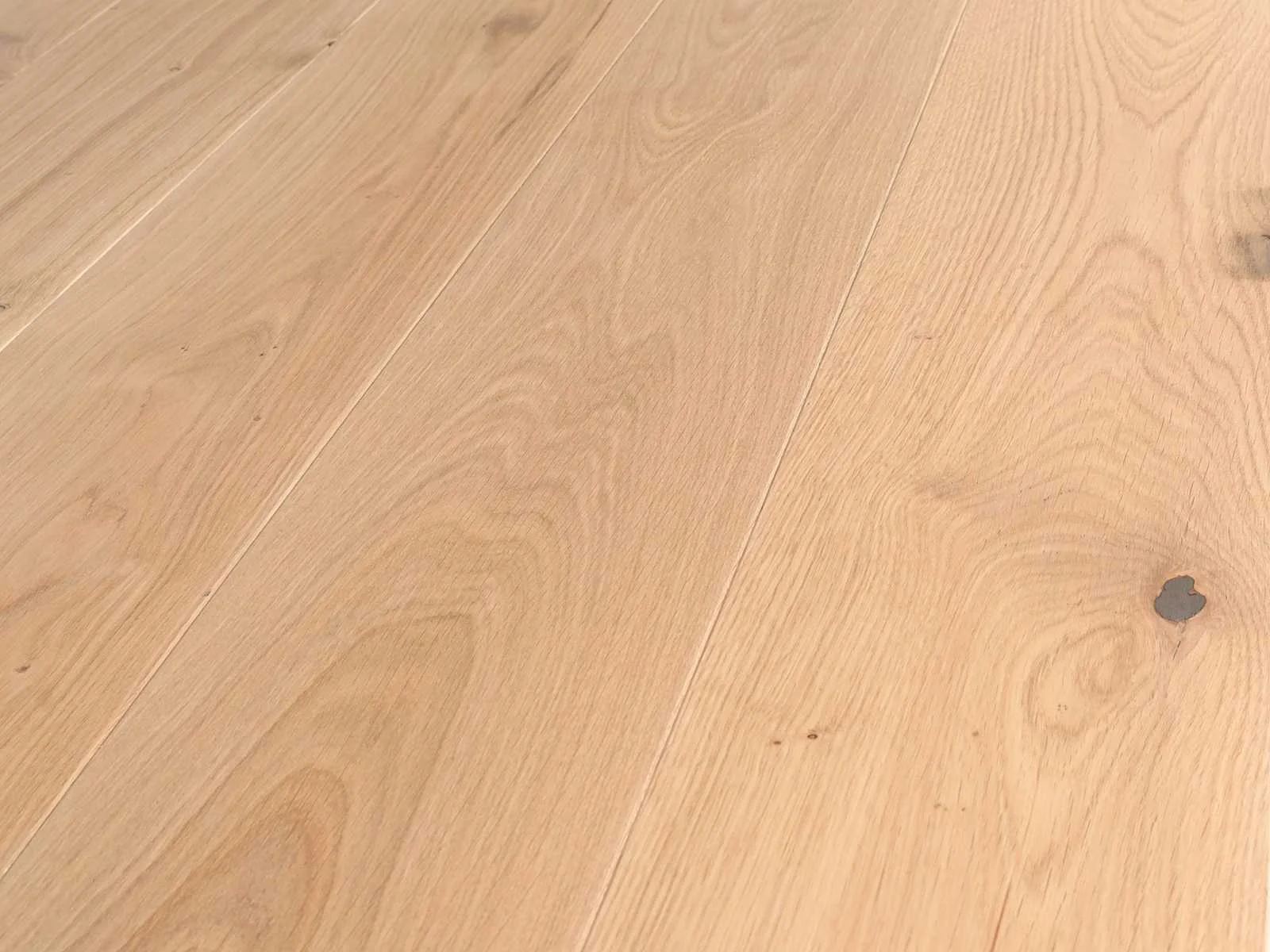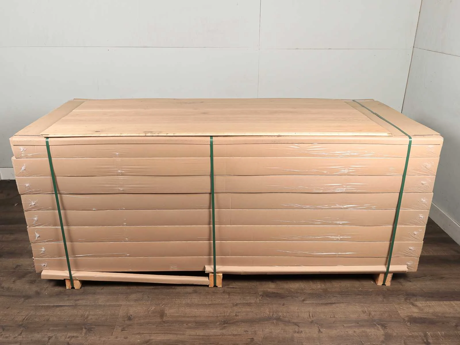 Gemakkelijk te leggen wegens 5G clicksysteem, geschikt voor alle soorten vloer en koelverwarmingen, kwaliteits parketvloer, vloer is van hoogwaardig Europees eiken hout, kant en klaar behandeld, dikte 14 mm, toplaag 3 mm, 56 pakken a 2,26 m2 Merk: Ambiance Product type: Parket Oppervlakte: 126m² Geschikt voor vloerverwarming: Ja V-groef: Ja Afwerking: Mat wit gelakt, voelbaar structuur, met v-groef Aantal m² per verpakking: 2.26m² Kleur: Natural oak 006 Gewicht: 1050kg Lengte: 1800mm Breedte: 180mm Materiaal: Eiken multiplank
