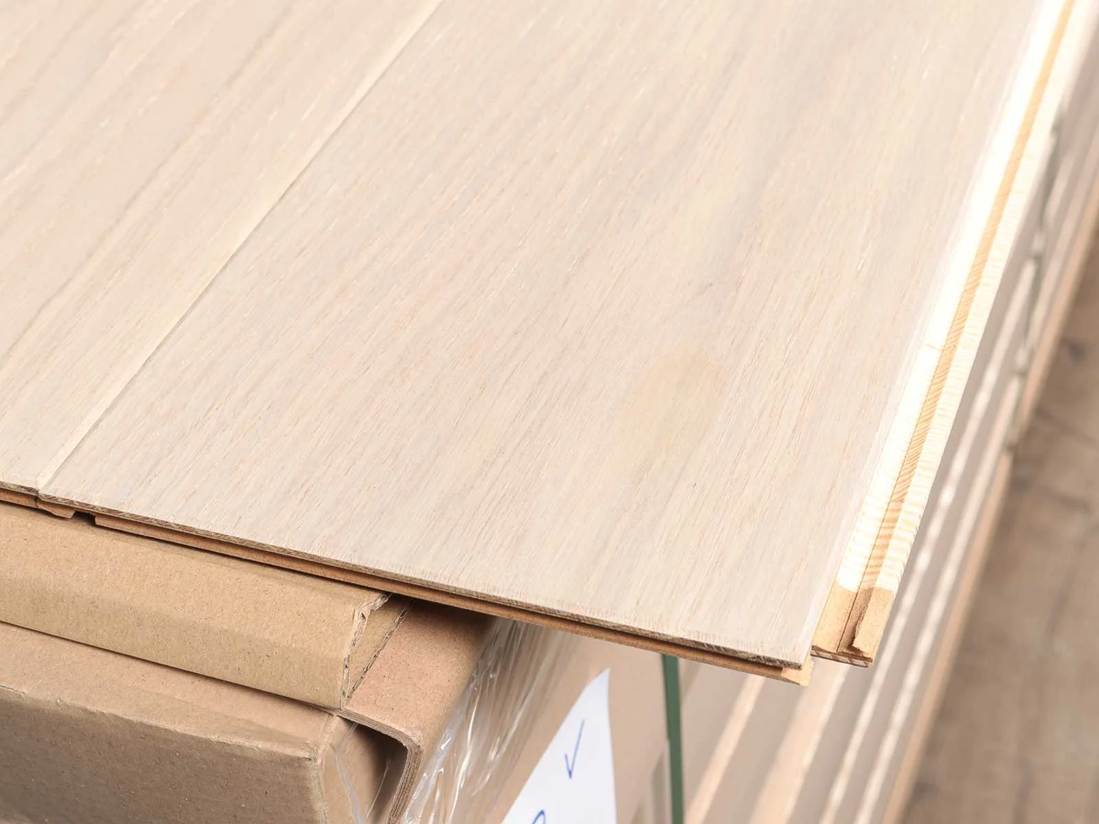 Gemakkelijk te leggen wegens 5G clicksysteem, geschikt voor alle soorten vloer en koelverwarmingen, kwaliteits parketvloer, vloer is van hoogwaardig Europees eiken hout, kant en klaar behandeld, dikte 14 mm, toplaag 3 mm, 39 pakken a 2,26 m2 Merk: Ambiance Product type: Parket Oppervlakte: 88m² Geschikt voor vloerverwarming: Ja V-groef: Ja Afwerking: Mat gelakt, geborsteld, met v-groef Aantal m² per verpakking: 2.26m² Kleur: Cream effect 448 Gewicht: 745kg Lengte: 1800mm Breedte: 180mm Materiaal: Eiken multiplank
