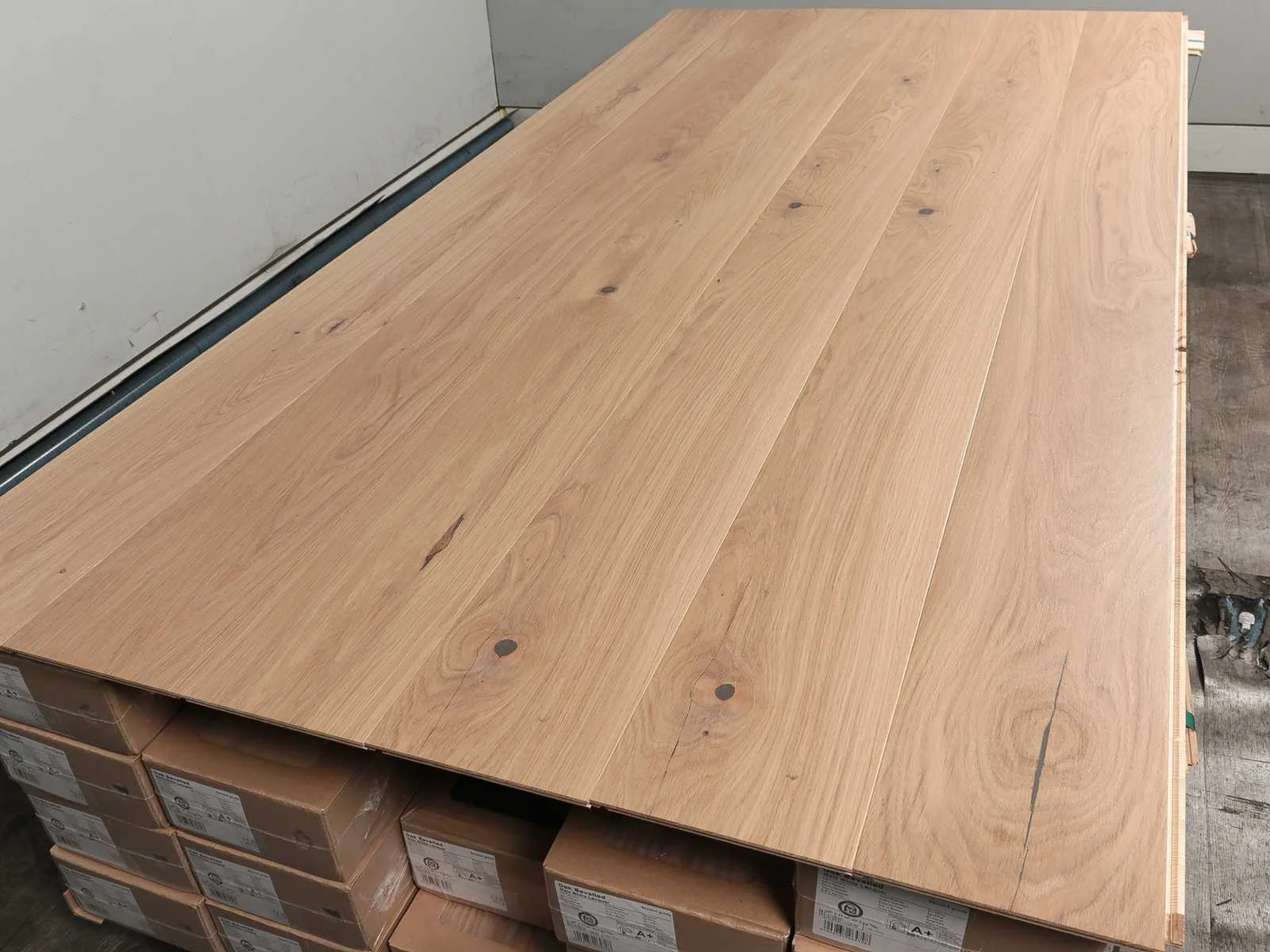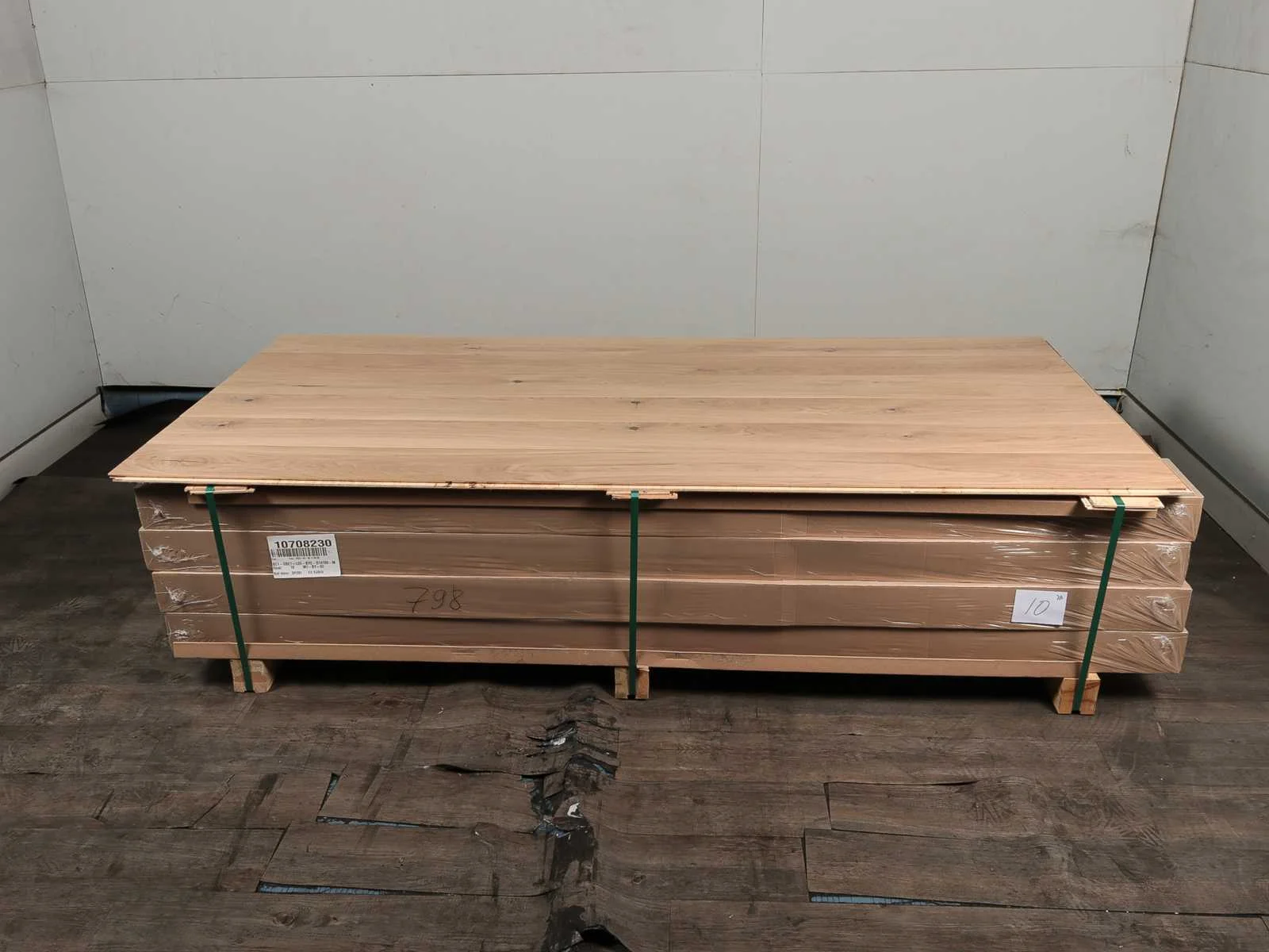 Gemakkelijk te leggen wegens 5G clicksysteem, geschikt voor alle soorten vloer en koelverwarmingen, kwaliteits parketvloer, vloer is van hoogwaardig Europees eiken hout, kant en klaar behandeld, dikte 14 mm, toplaag 3 mm, 15 pakken a 2,77 m2 Merk: Ambiance Product type: Parket Oppervlakte: 41m² Geschikt voor vloerverwarming: Ja V-groef: Ja Afwerking: Mat wit gelakt, voelbaar structuur, met v-groef Aantal m² per verpakking: 2.77m² Kleur: Trend oak 798 Gewicht: 345kg Lengte: 2200mm Breedte: 180mm Materiaal: Eiken multiplank