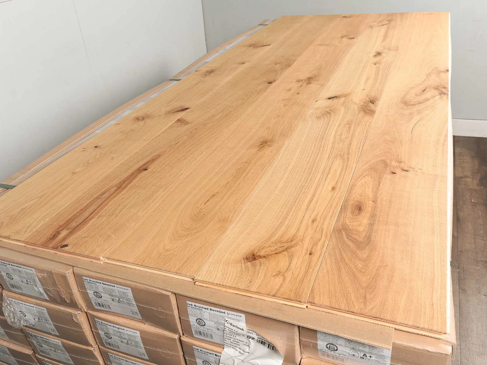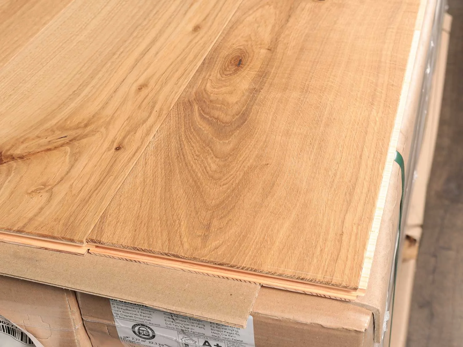 Gemakkelijk te leggen wegens mes en groef systeem, geschikt voor alle soorten vloer en koelverwarmingen, kwaliteits parketvloer, vloer is van hoogwaardig Europees eiken hout, kant en klaar behandeld, dikte 14 mm, toplaag 3 mm, 17 pakken a 2,77 m2 Merk: Ambiance Product type: Parket Oppervlakte: 47m² Geschikt voor vloerverwarming: Ja V-groef: Ja Afwerking: Geolied, geoxideerd, geborsteld, met v-groef Aantal m² per verpakking: 2.77m² Kleur: Honey oak 157 Gewicht: 390kg Lengte: 2200mm Breedte: 180mm Materiaal: Eiken multiplank