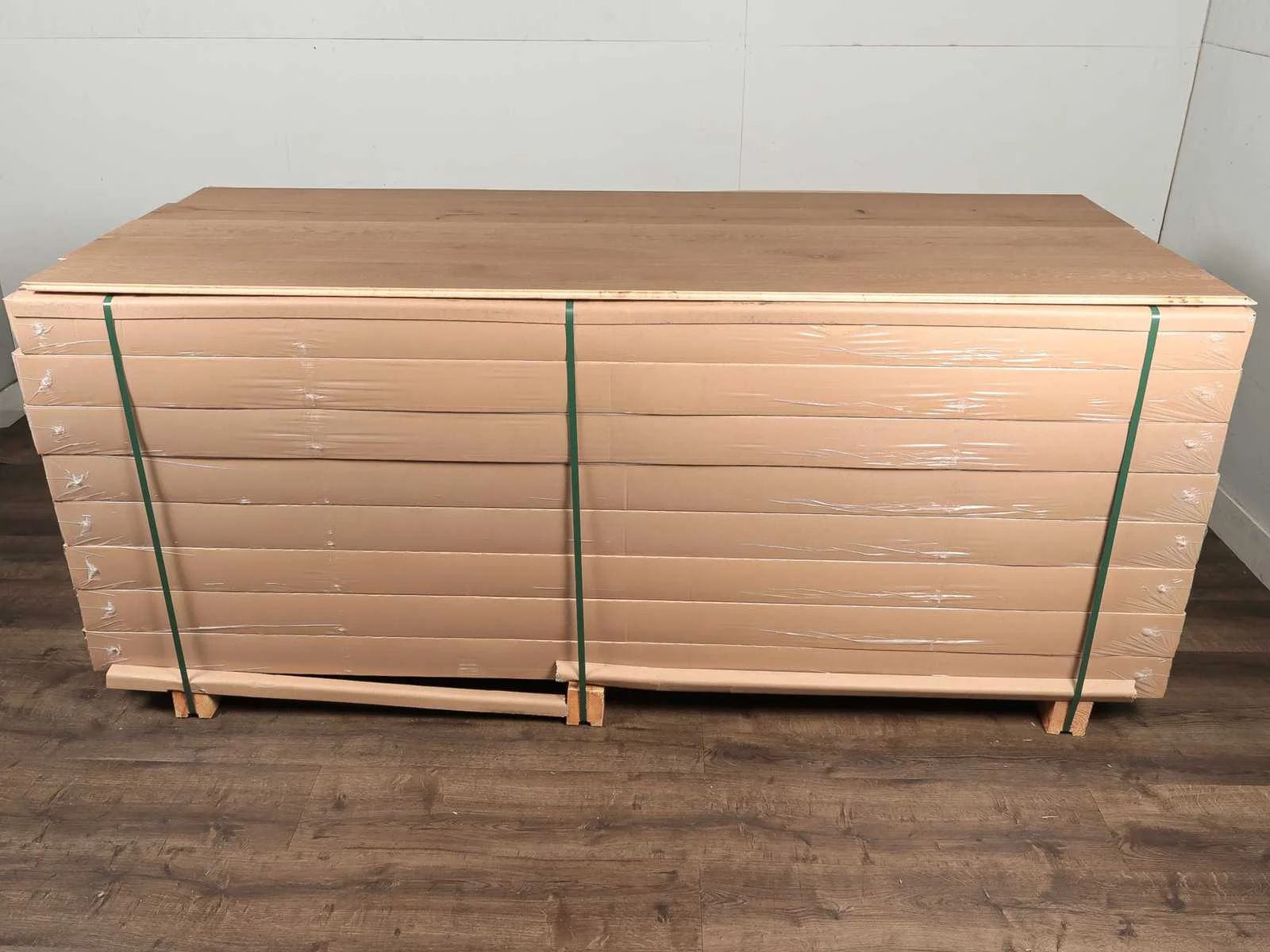 Gemakkelijk te leggen wegens 5G clicksysteem, geschikt voor alle soorten vloer en koelverwarmingen, kwaliteits parketvloer, vloer is van hoogwaardig Europees eiken hout, kant en klaar behandeld, dikte 14 mm, toplaag 3 mm, 10 pakken a 2,77 m2 Merk: Ambiance Product type: Parket Oppervlakte: 27m² Geschikt voor vloerverwarming: Ja V-groef: Ja Afwerking: Geolied, geoxideerd, geborsteld, met v-groef Aantal m² per verpakking: 2.77m² Kleur: Walnut oak 984 Gewicht: 230kg Lengte: 2200mm Breedte: 180mm Materiaal: Eiken multiplank