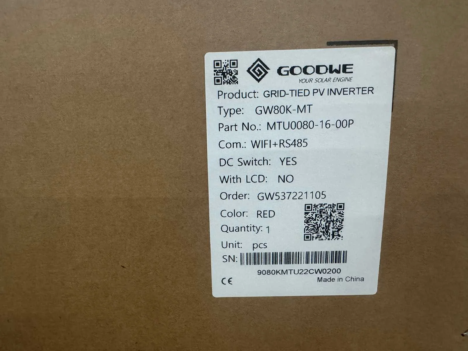 GoodWe GW80K-MT | met ARC detection Conditie: ongebruikt Merk: GoodWe Type: GW80K-MT | met ARC detection Vermogen: 36kW Wifi: false WLAN/LAN: false 1-fase: false 3-fase: true DC switch: true
