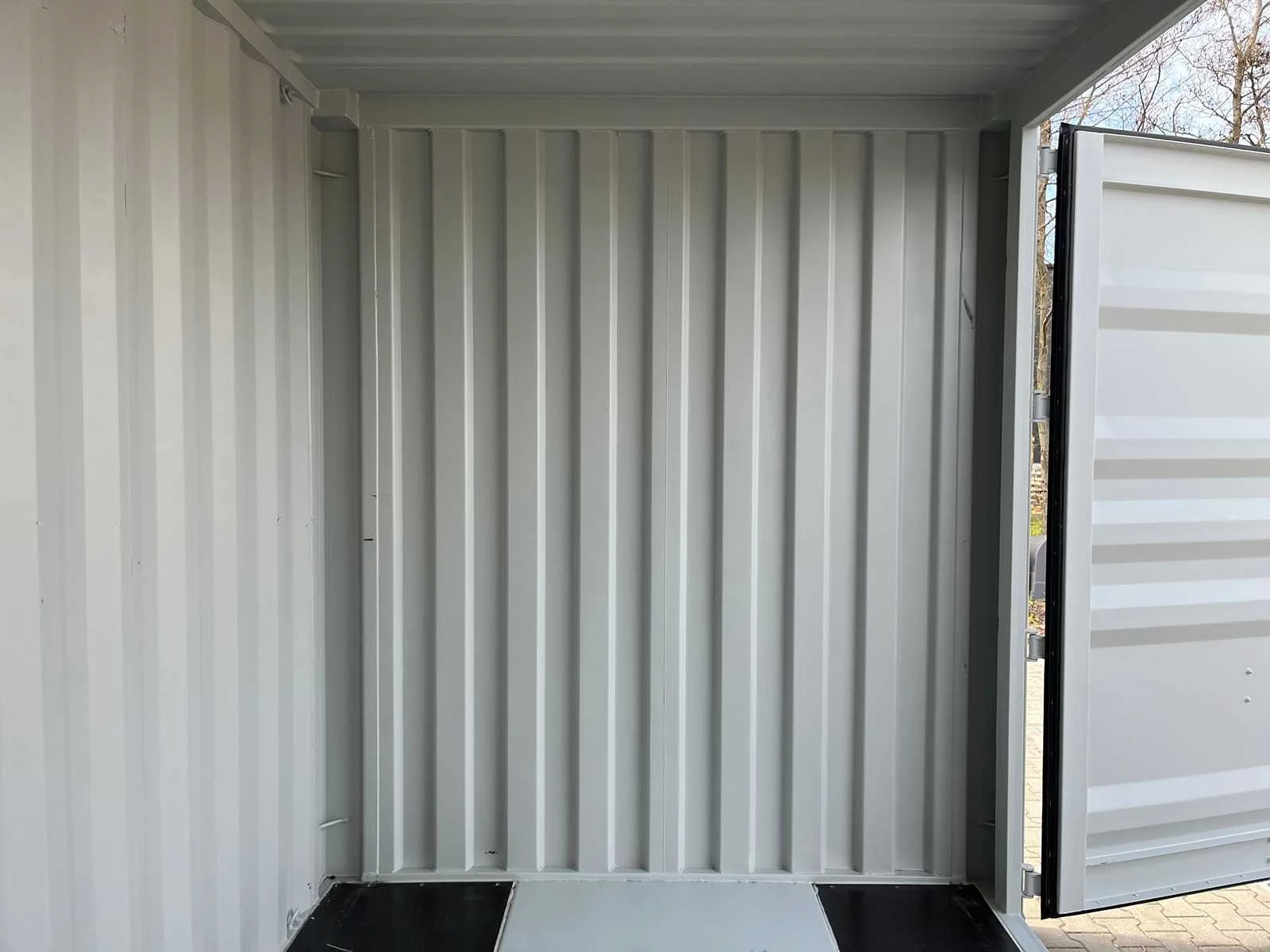 Zeecontainer, voorzien van 4 separaat te openen zijdeuren en einddeur; slotkast; maximaal laadvermogen 24 ton; ongebruikt. Type: 40 ft High Cube Lengte (ft): 40 High cube: true Eigen gewicht: 4260kg Totale afmeting L: 12192mm Totale afmeting Breedte: 2438mm Totale afmeting Hoogte: 2896mm
