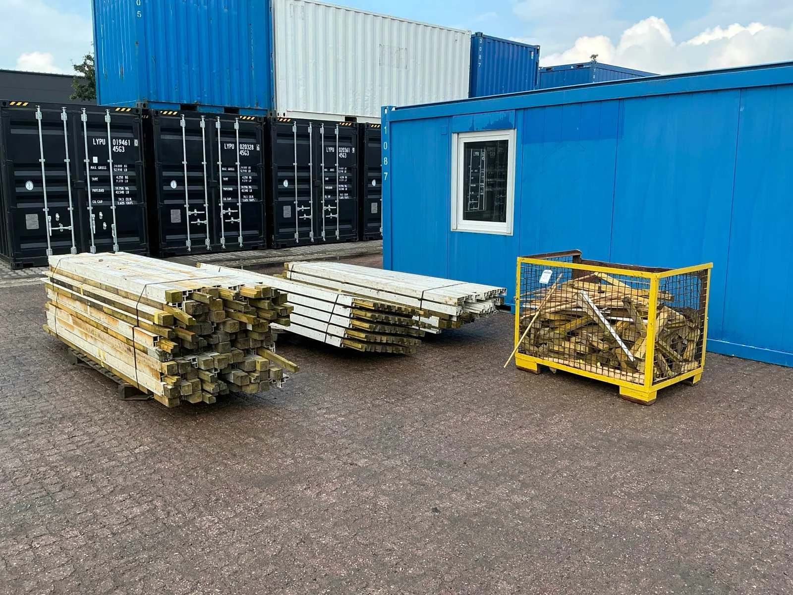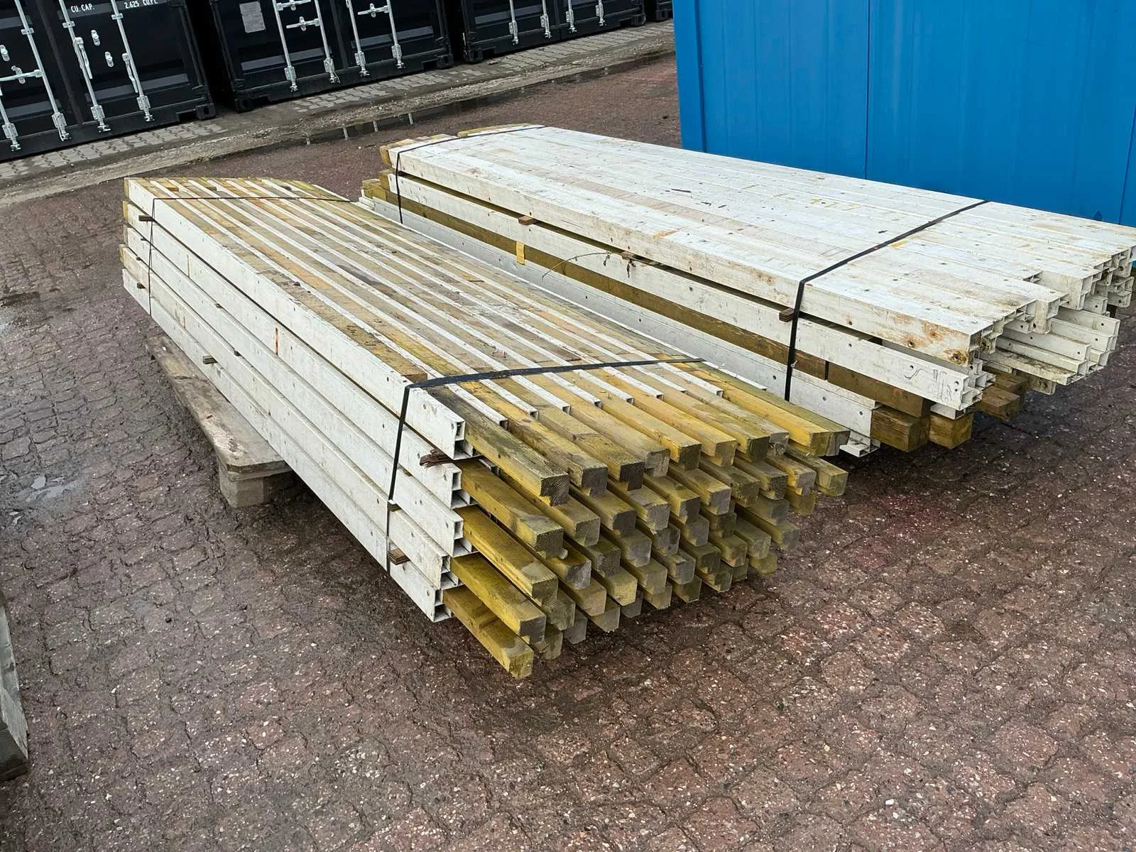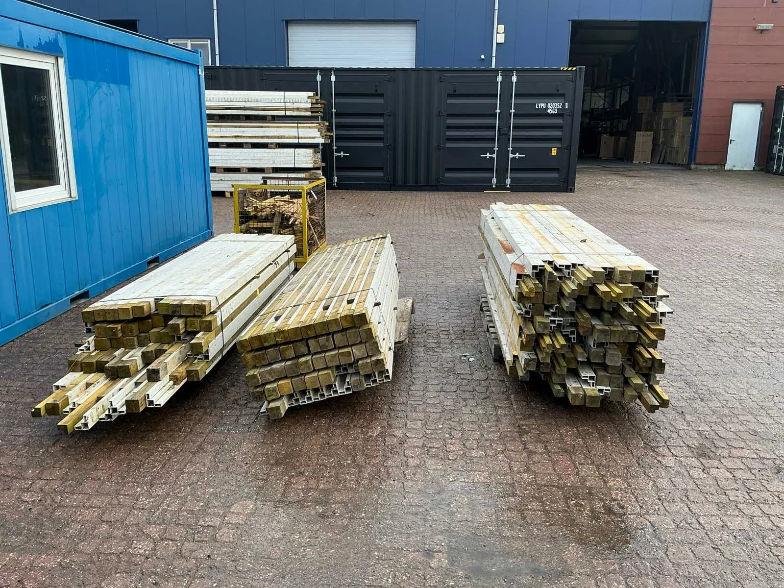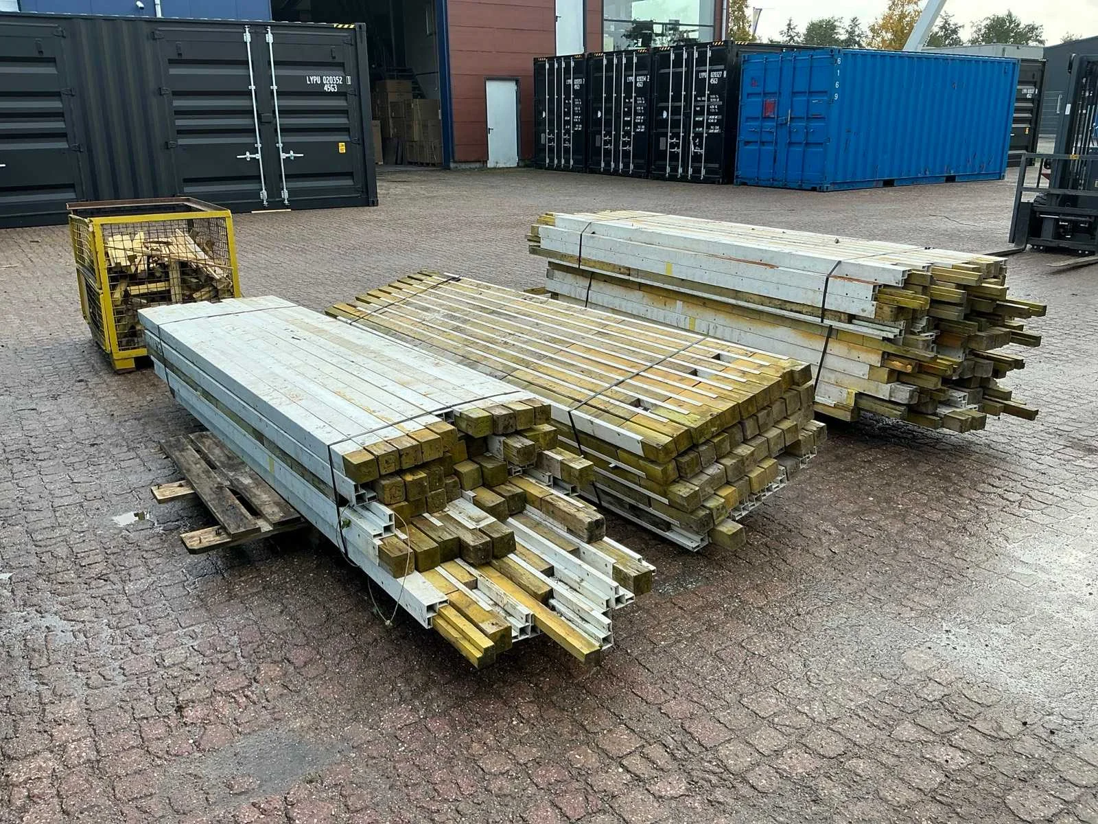 Diverse lengtes, 3 pallets + 1 metalen krat met toebehoren