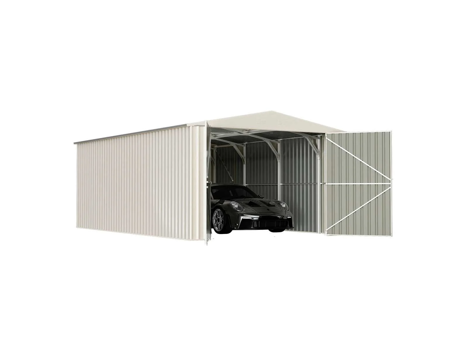 Voorzien van dubbele draaideur aan de voorkant en een draaideur aan de zijkant Afmeting dubbele draaideur aan de voorzijde: 255x195cm Afmeting deur aan de zijkant: 86x195 cm Binnenmaat 337x585x233 cm Wandhoogte: 200 cm Kleur metalen plaatwerk buitenzijde: RAL 9001 Merk: Field Industries Materiaal: Metaal Type: 1119 Bouwjaar: 2025 Totaal oppervlakte: 21m² Totale afmeting L: 5890mm Totale afmeting Breedte: 3550mm Totale afmeting Hoogte: 2330mm Eigen gewicht: 350kg