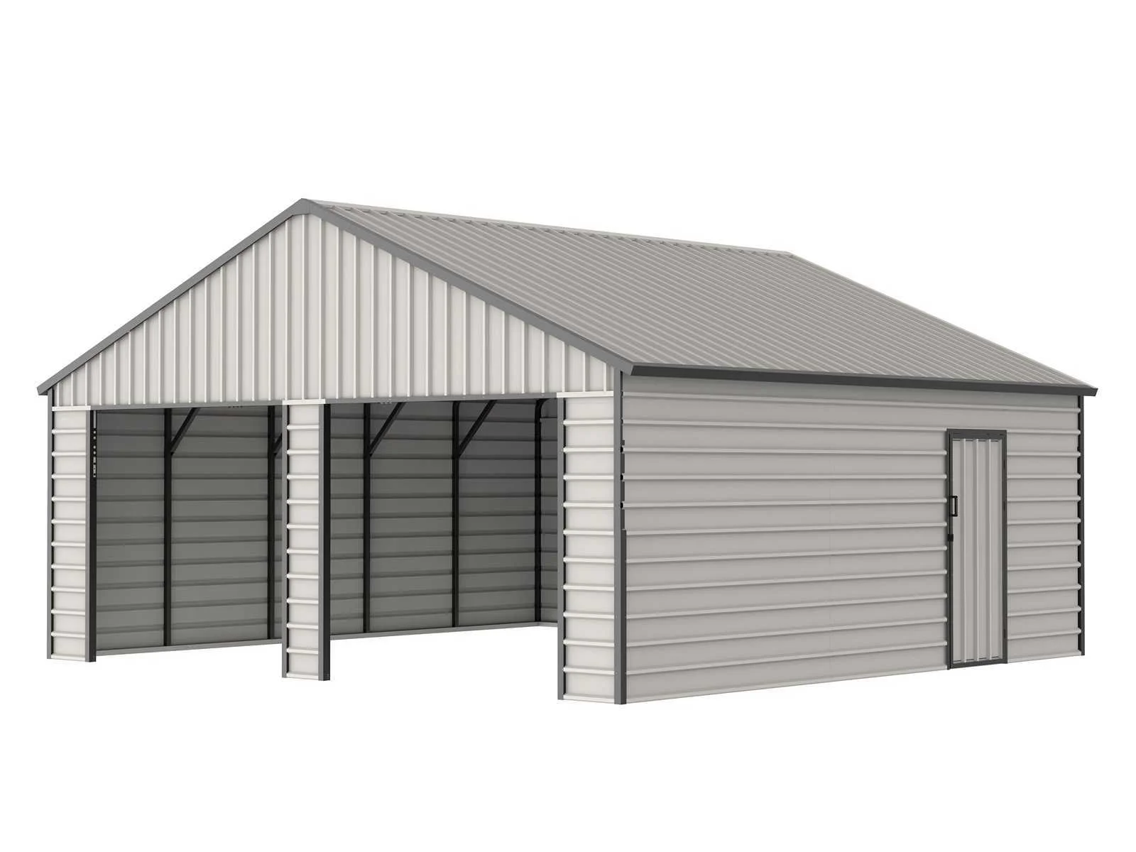 Wandhoogte 244 cm, deuropening: 250*225 cm, zij-ingang deur: 91*198 cm, verankering d.m.v. ankerbouten. Kleur: Crème. Voozien van 2 elektrische rolluikdeuren. Vereiste fundering: Betonnen platen, massief hout of gelijkwaardig. Merk: Field Industries Materiaal: Metaal Type: 2322 Bouwjaar: 2025 Totale afmeting L: 6700mm Totale afmeting Breedte: 7000mm Totale afmeting Hoogte: 3760mm