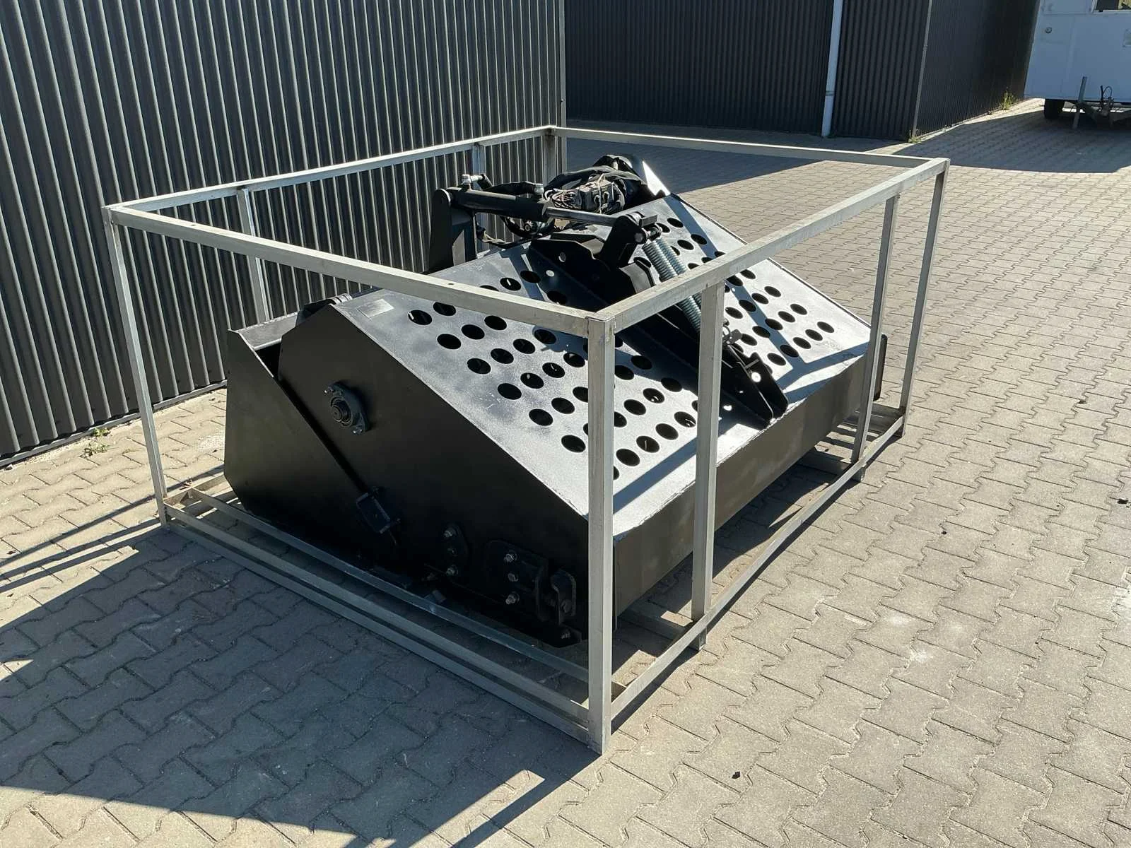 Voor montage aan schranklader/"Bobcat", voorzien van hydromotor, hydraulisch slangenpakket. Verwijdert stenen van de oppervlakte. De hydraulische cilinder opent het deksel - om storten te vergemakkelijken, en zorgt ervoor dat bak en snijkant kunnen gebruikt worden om vuil te duwen en te schrapen. De harkbalken zorgen voor een betere nivellering door een langer contact met de grond. Merk: Field Industries Type: Landscape Finishing Rake Bouwjaar: 2025 Totale afmeting L: 1780mm Totale afmeting Breedte: 921mm Totale afmeting Hoogte: 1216mm