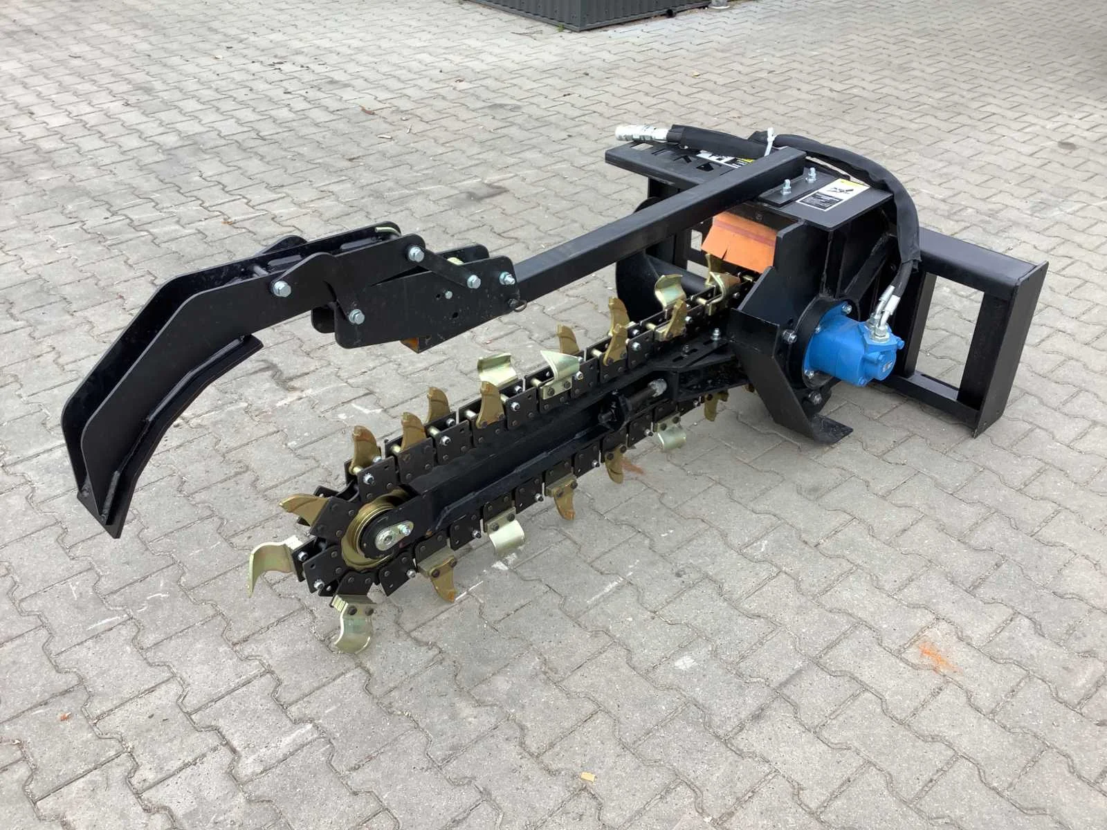 Voorzien van schranklader/“Bobcat” aansluiting, hydropomp, hydraulisch slangenpakket, werkbreedte 860 mm, werklengte 1750 mm, kettingbreedte 180 mm, ongebruikt Merk: Field Industries Type: Trencher Bouwjaar: 2025 Eigen gewicht: 320kg